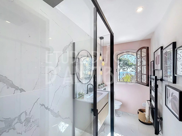 A l’étage, 4 chambres, deux salle d’eau, terrasses, vue mer.