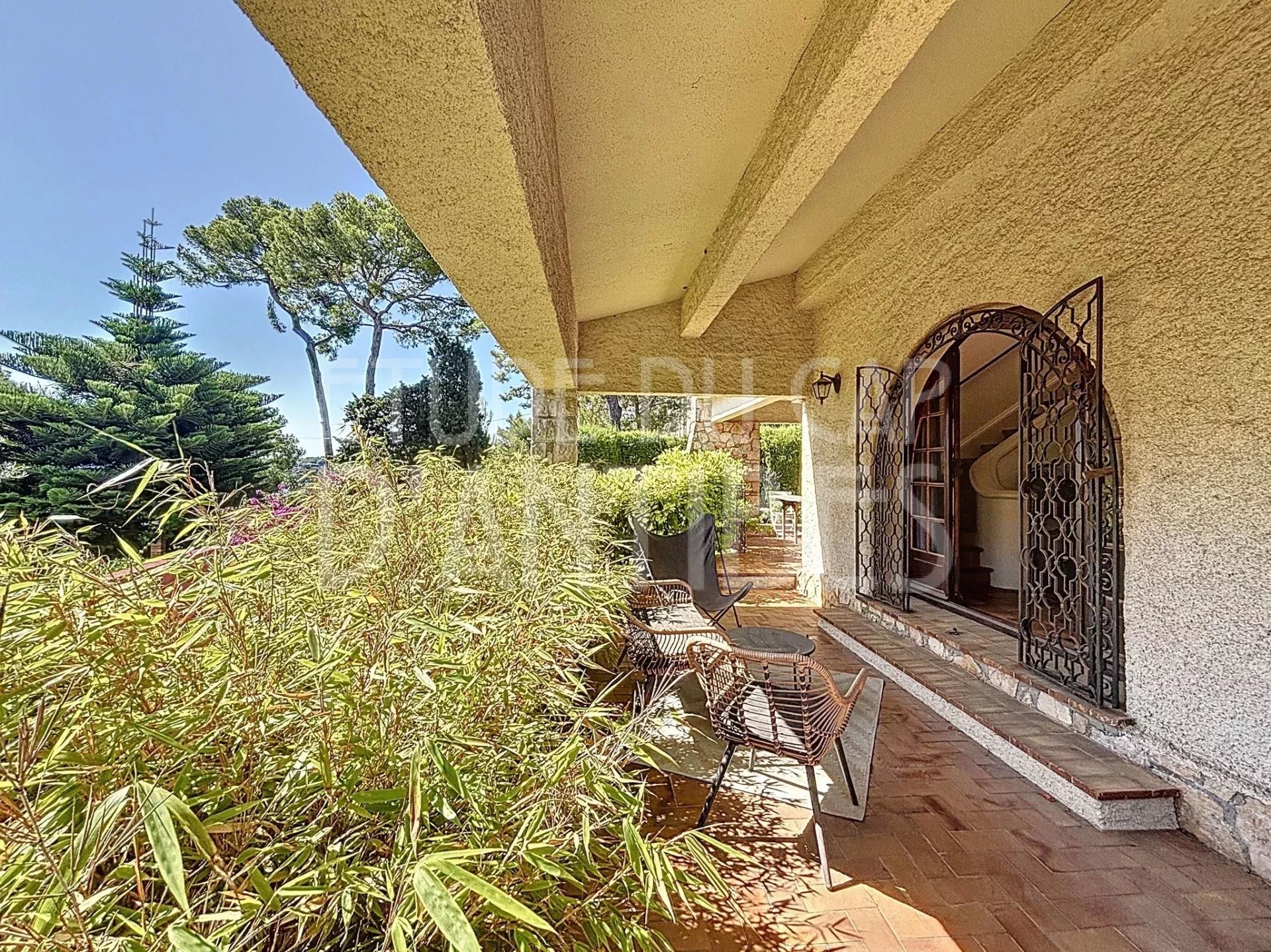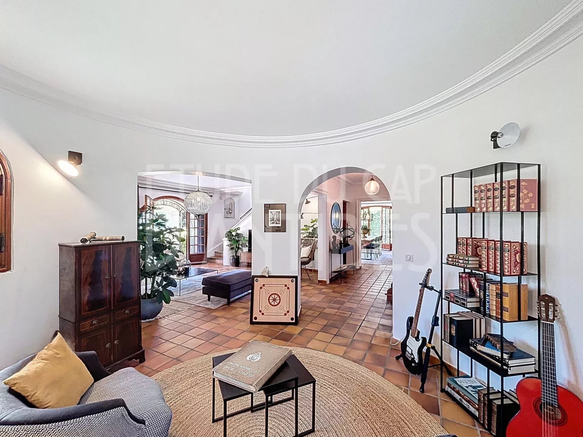 Villa Méditerranéenne située sur le versant Est du Cap d’Antibes. Vue mer. Piscine.