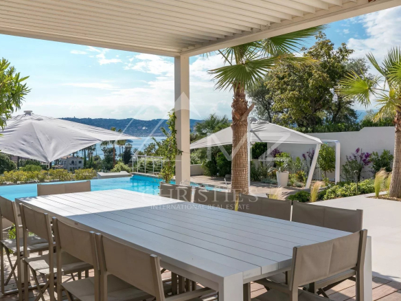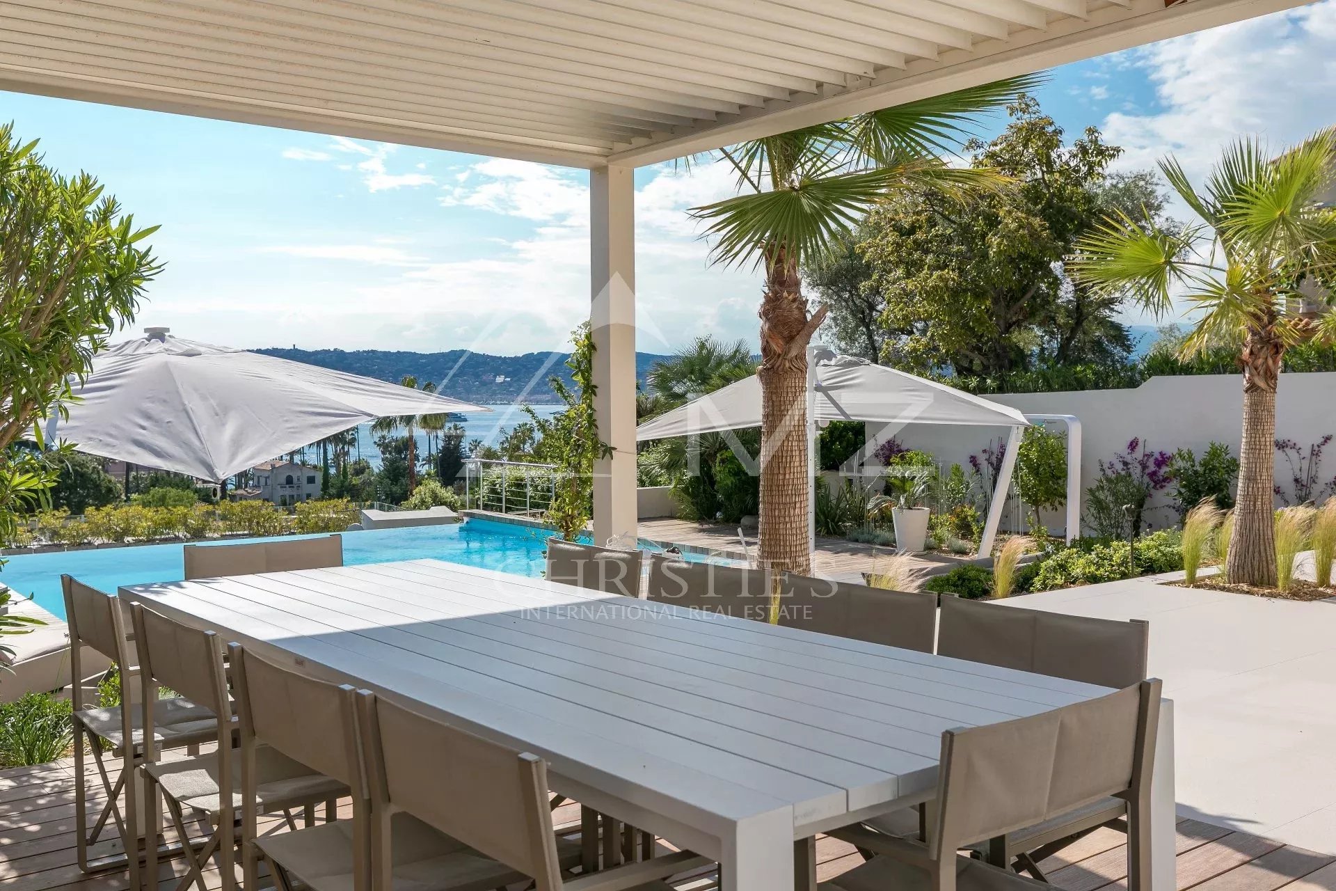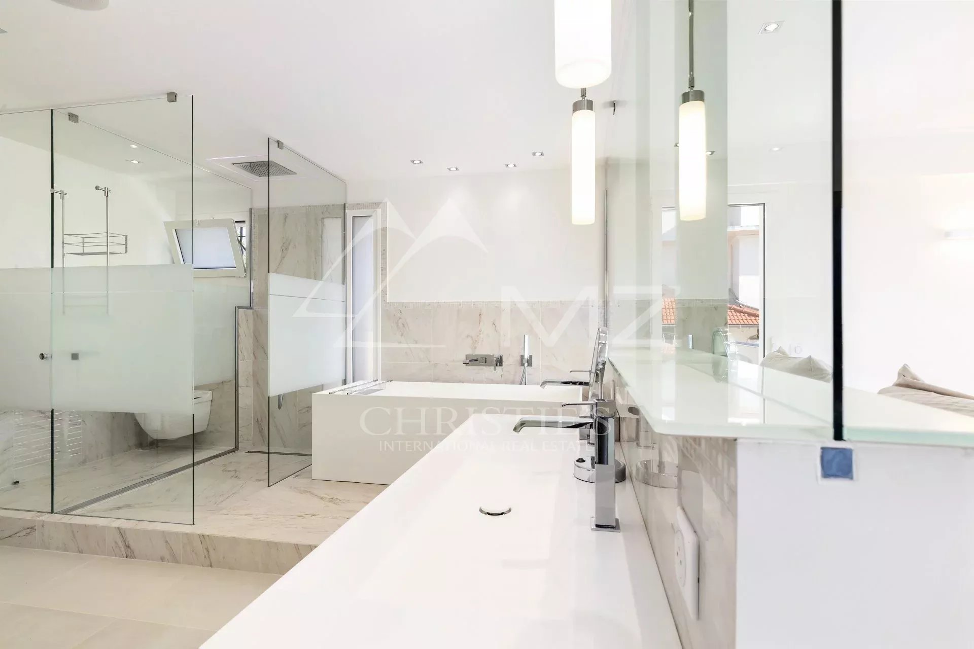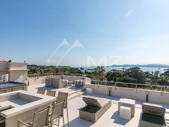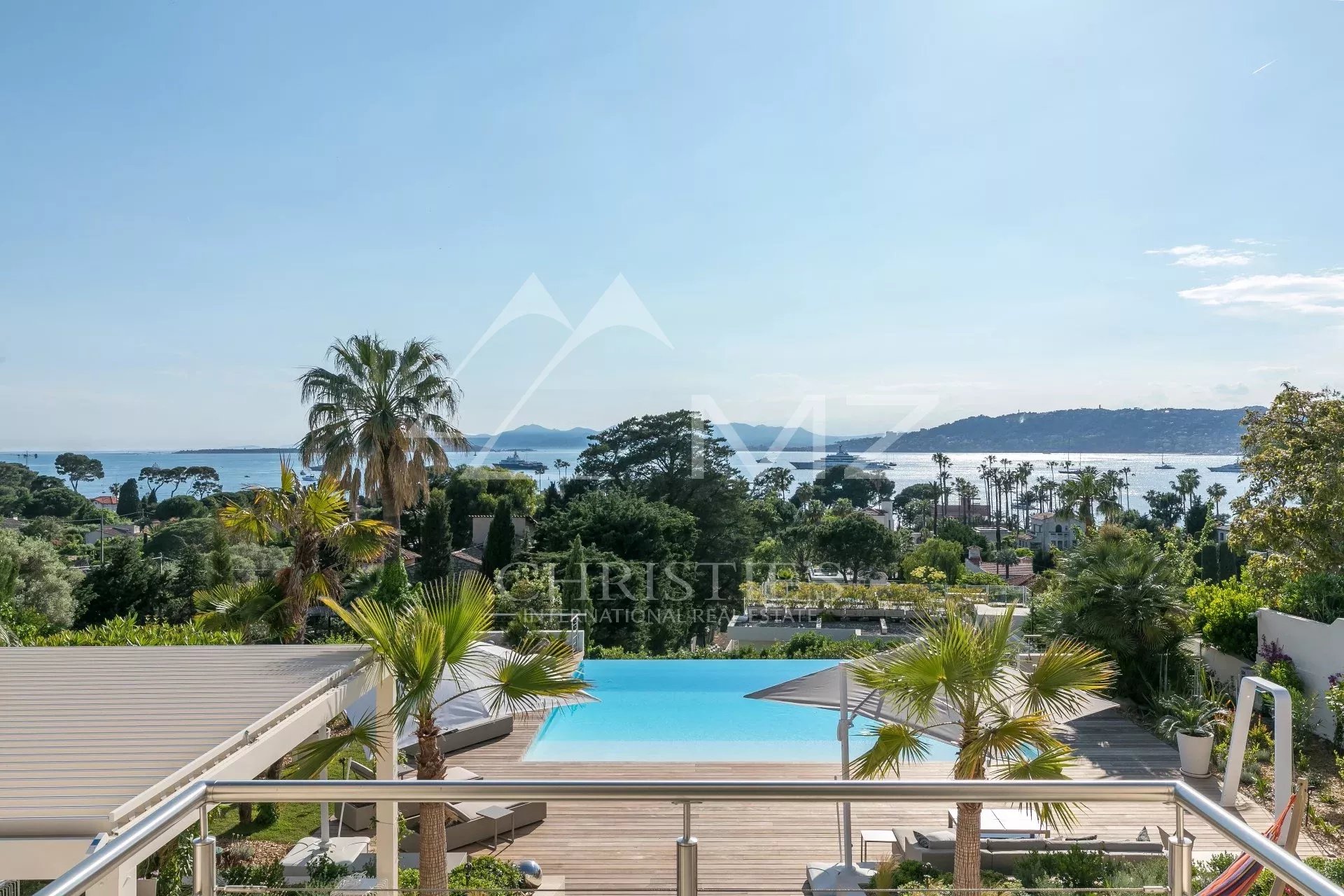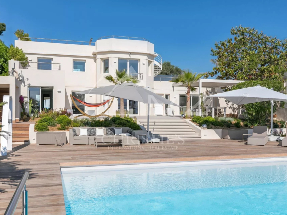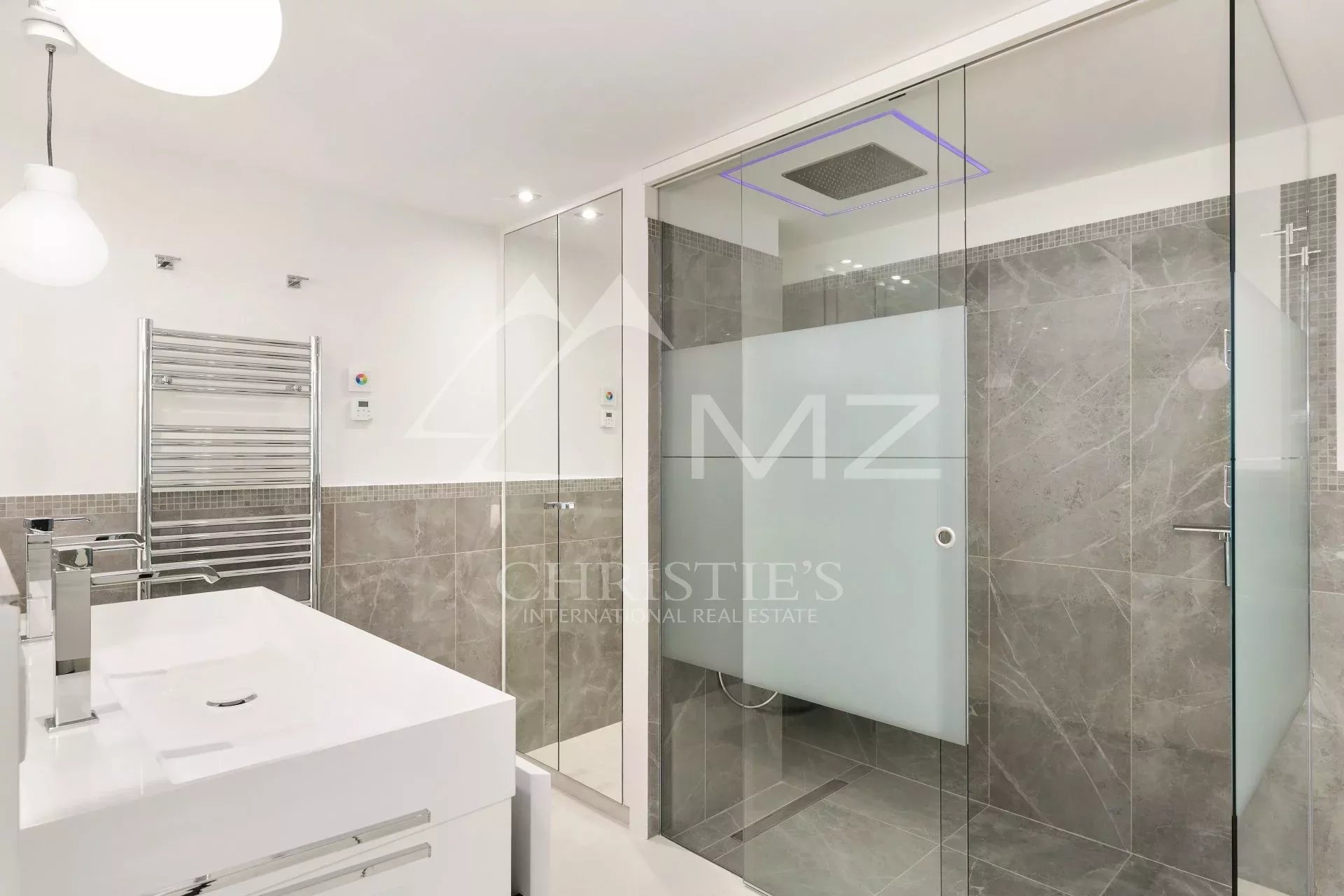 Somptueuse villa moderne d’environ 420 m² avec vue mer, comprenant au rez-de-chaussée : un séjour avec salle à manger, une cuisine équipée, une chambre en suite avec salle d’eau. A l’étage : une chambre de maître avec salle de bains, deux chambres en suite avec salle d’eau. Sur le toit, une terrasse avec bar et jacuzzi. Dans une maison d’ami, un séjour, une salle à manger, une cuisine, deux chambres en suite avec salle d’eau et une salle de sport. Terrain d’environ 1000m², piscine chauffée 10×10.