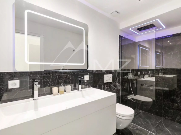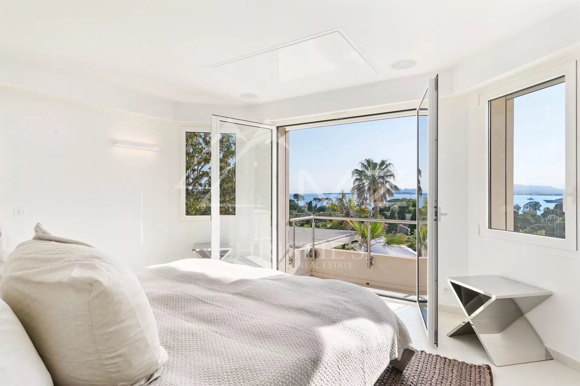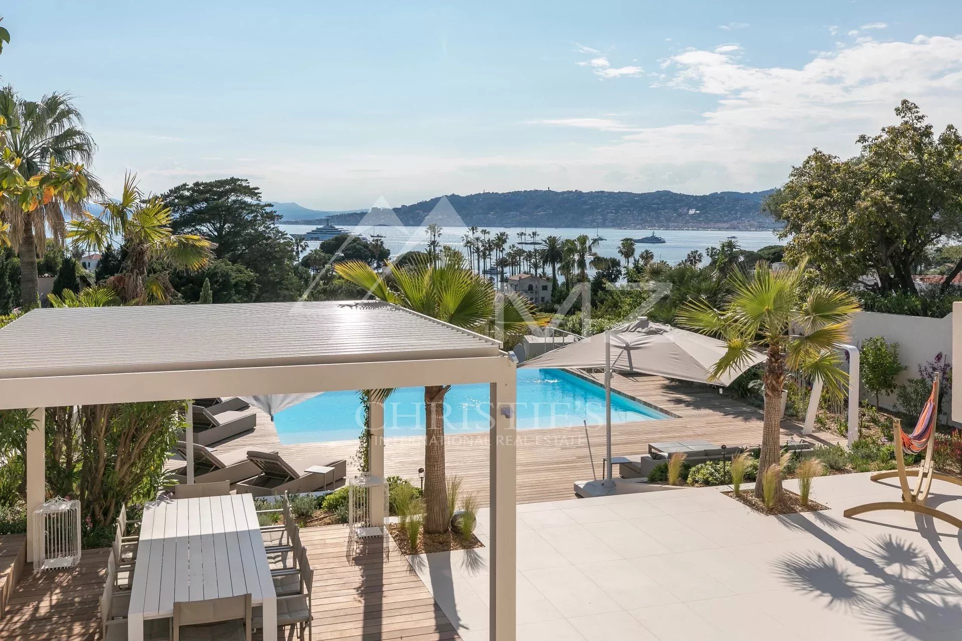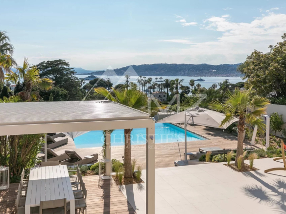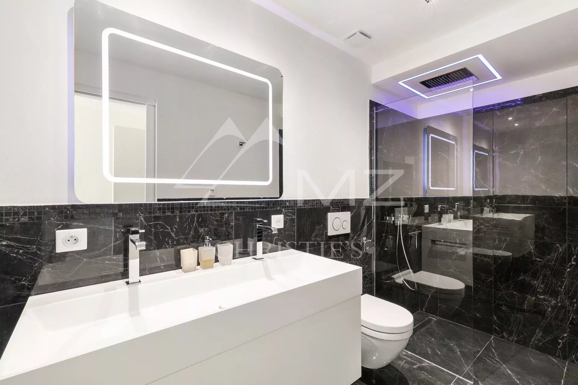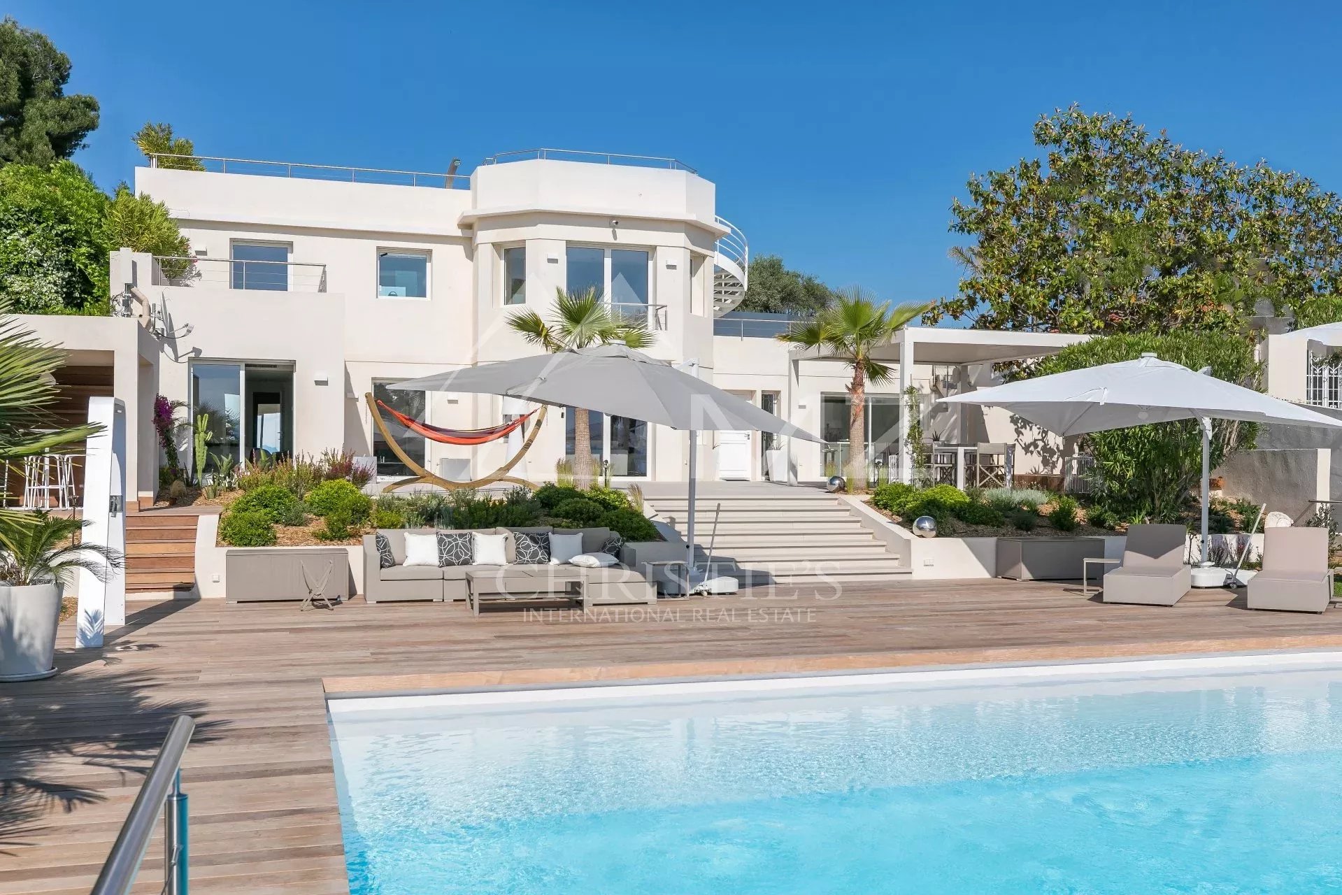 Somptueuse villa moderne d’environ 420 m² avec vue mer, comprenant au rez-de-chaussée : un séjour avec salle à manger, une cuisine équipée, une chambre en suite avec salle d’eau. A l’étage : une chambre de maître avec salle de bains, deux chambres en suite avec salle d’eau. Sur le toit, une terrasse avec bar et jacuzzi. Dans une maison d’ami, un séjour, une salle à manger, une cuisine, deux chambres en suite avec salle d’eau et une salle de sport. Terrain d’environ 1000m², piscine chauffée 10×10.