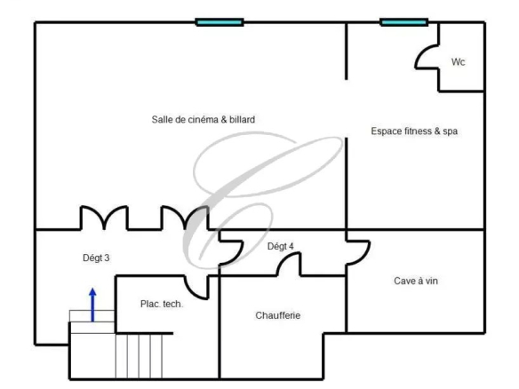 Au niveau inférieur : salle de cinéma, billard, salle de sport, jacuzzi, sauna, cave à vin.