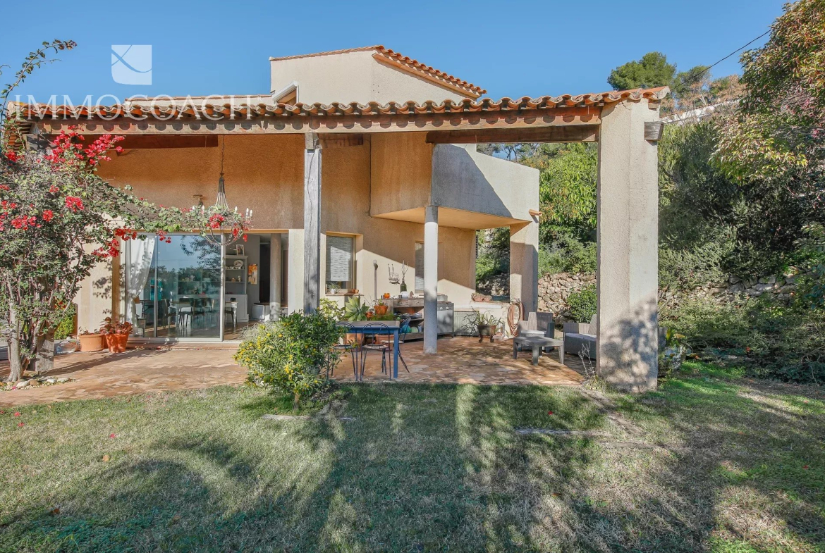 Dans quartier résidentiel recherché implantée sur un beau terrain très bien entretenu cette villa offre un bel espace de vie de plain-pied avec l’extérieur. Baignée de soleil avec différents espaces aménagés pour profiter pleinement de chaque instant. Trois chambres dont deux avec mezzanine, deux salles de bains. Possibilité de créer un studio indépendant. Buanderie, garage de 40m2, atelier.