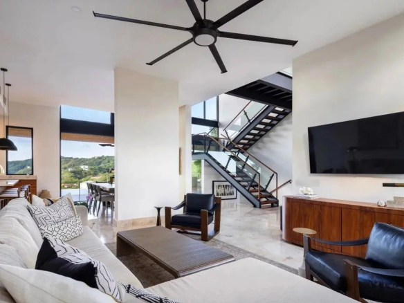 ✨ CASA ALTAMIRA — PACIFICO, PAPAGAYO, GUANACASTE, COSTA RICA — Bienvenue à Casa Altamira, un chef-d’œuvre architectural situé au sein de la communauté exclusive PACIFICO à Playas del Coco, dans la région de Papagayo au Costa Rica. La villa développe environ 475 m² sur un terrain de 1 548 m², avec une vue panoramique imprenable sur l’océan Pacifique. Le design contemporain aux influences tropicales associe des matériaux d’exception : marbre indonésien dans les espaces sociaux et salles de bains, teck naturel dans les chambres et sur la terrasse de 105 m², cuisine gastronomique avec armoires en teck, comptoirs en quartzite Taj Mahal et appareils Z-Line en acier noir, salles de bains avec comptoirs en granit et robinets Brizo. La villa compte 4 chambres spacieuses plus une salle multimédia avec canapé-lit, 4 salles de bains raffinées et une salle de bains de service, un bureau et un garage sécurisé pour 2 voitures. La piscine de 30 m² avec carreaux Sukabumi verts est entourée d’une terrasse en teck de 105 m². Climatisation centrale à vitesse variable, ventilateurs Big Ass et stores occultants électriques assurent un confort optimal. Les résidents de PACIFICO bénéficient de piscines de style complexe hôtelier, courts de tennis et de pickleball, centre de remise en forme haut de gamme et club de plage exclusif.