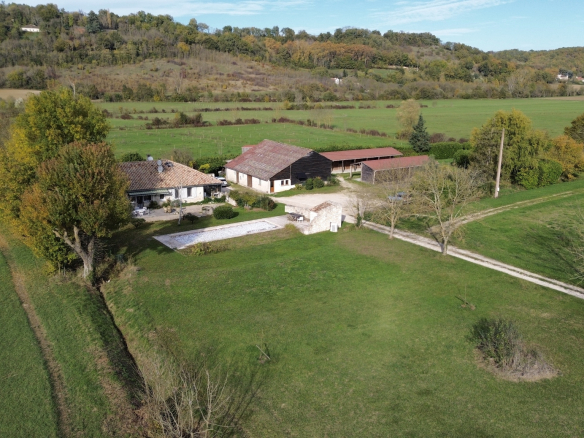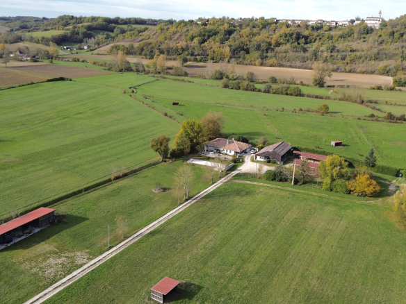 Cette propriété rare se situe dans une vallée tranquille près de Castelsagrat, entourée de vues à 360o et de 18 hectares de pâturages plats et verdoyants, divisés en paddocks clôturés avec ruban.
