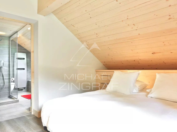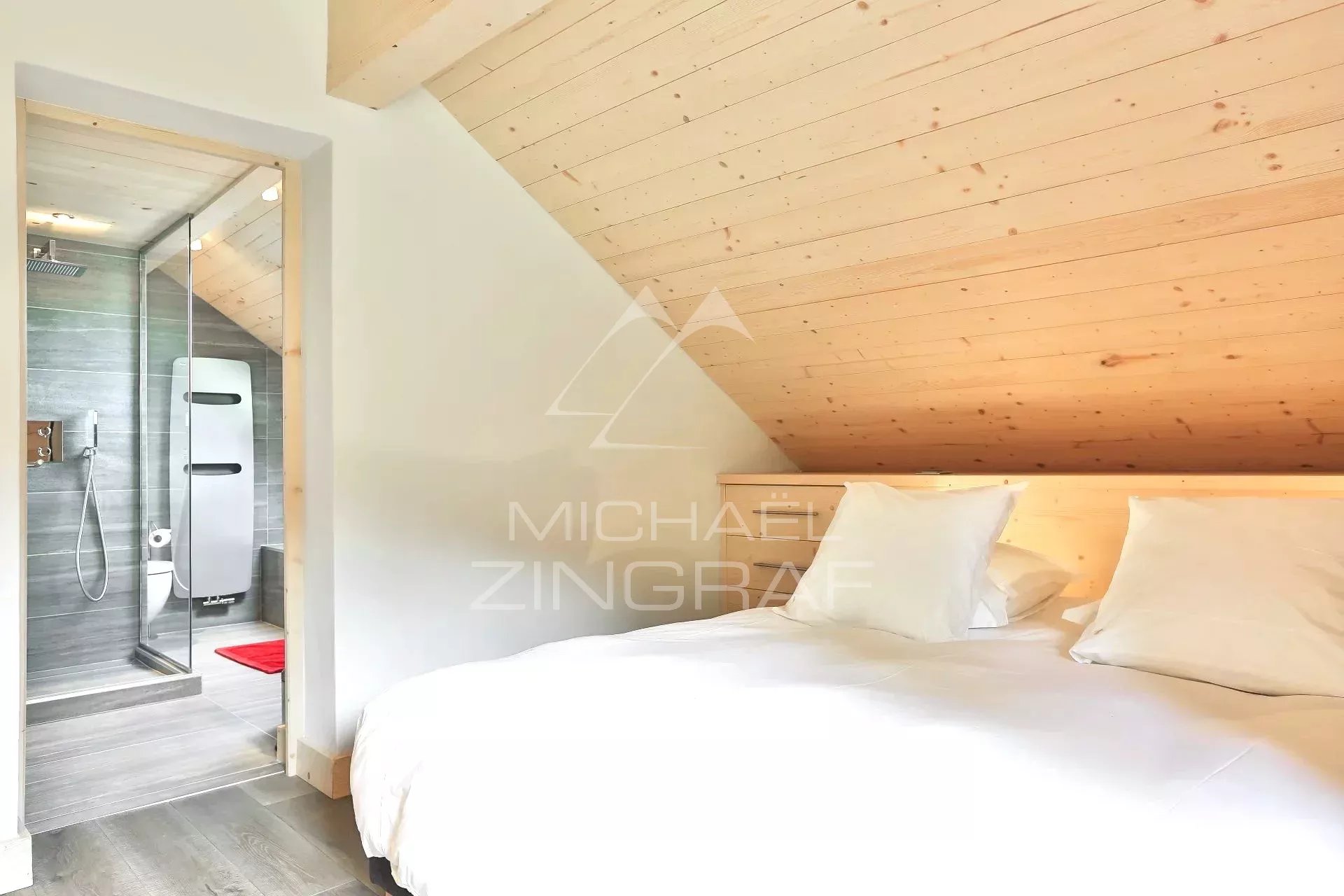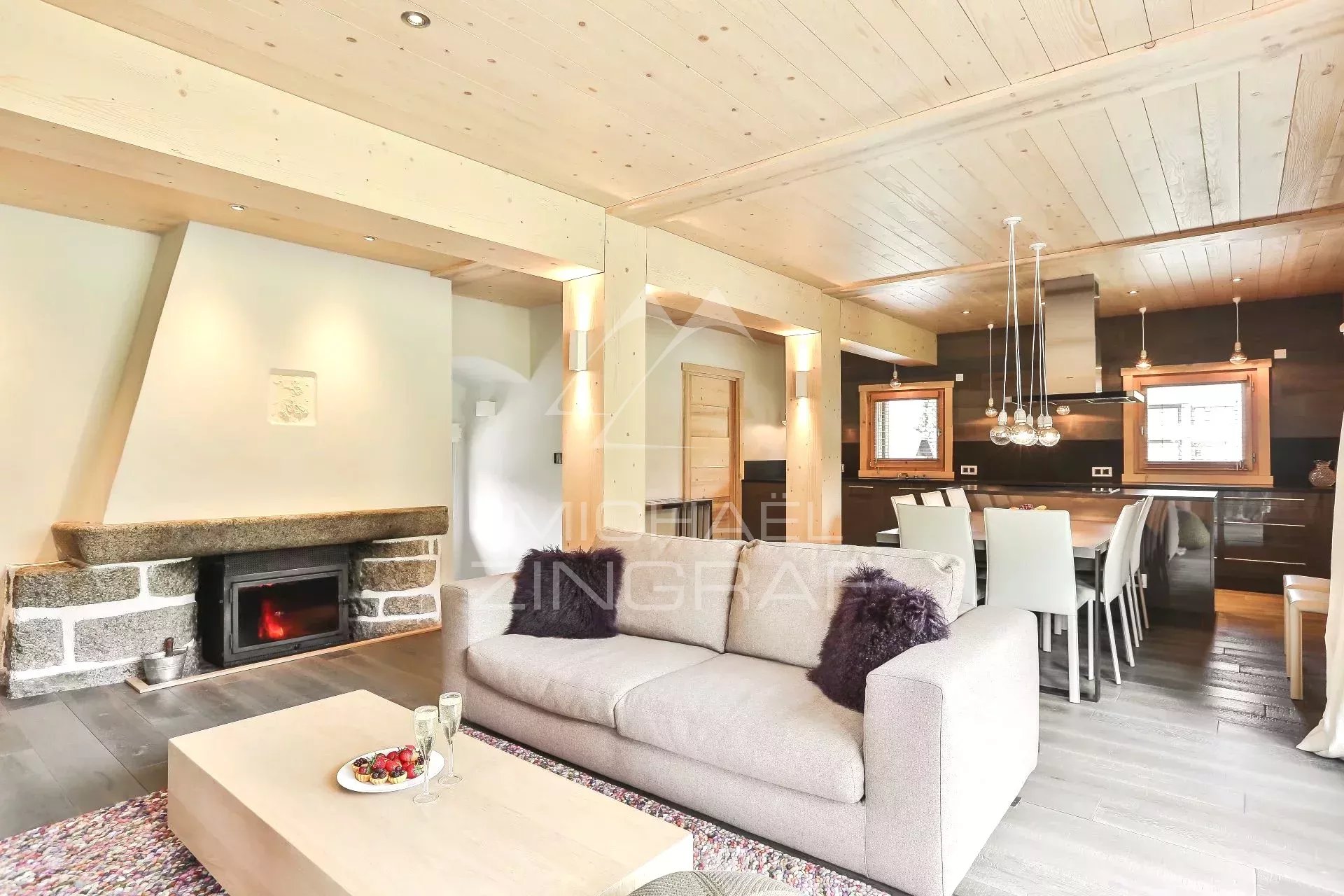 Michaël Zingraf Real Estate Megève vous propose ce chalet de quatre chambres, avec une grande pièce de vie salon/salle à manger et cuisine ouverte, s’ouvrant sur terrasse, d’une surface de 141 m2 habitables (158 m2 au total).