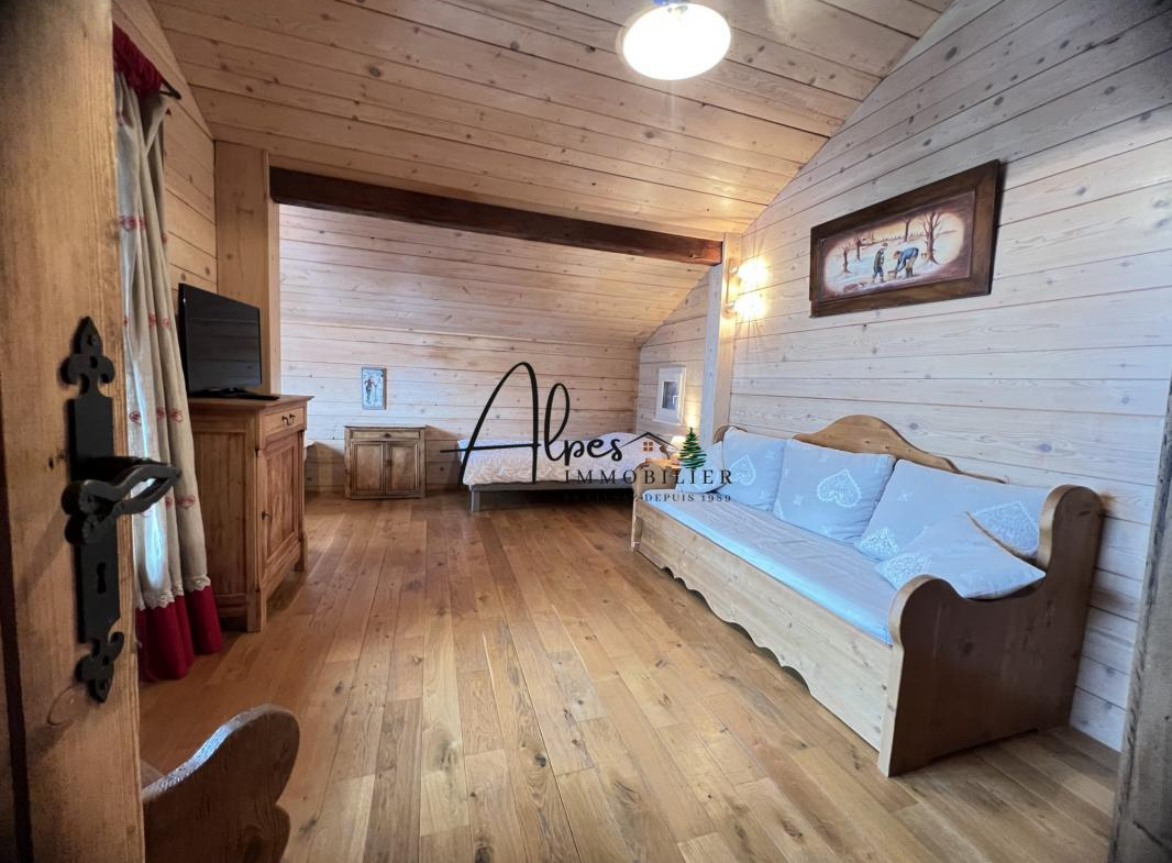 Imaginez-vous dans un chalet avec une vue panoramique sur la Chaîne des Aravis dans le quartier très prisé des Riffroids. Ce chalet de 103 m², construit en 1970 et rénové, est un véritable havre de paix. Situé sur un terrain de 540 m², il offre une possibilité d’agrandissement.