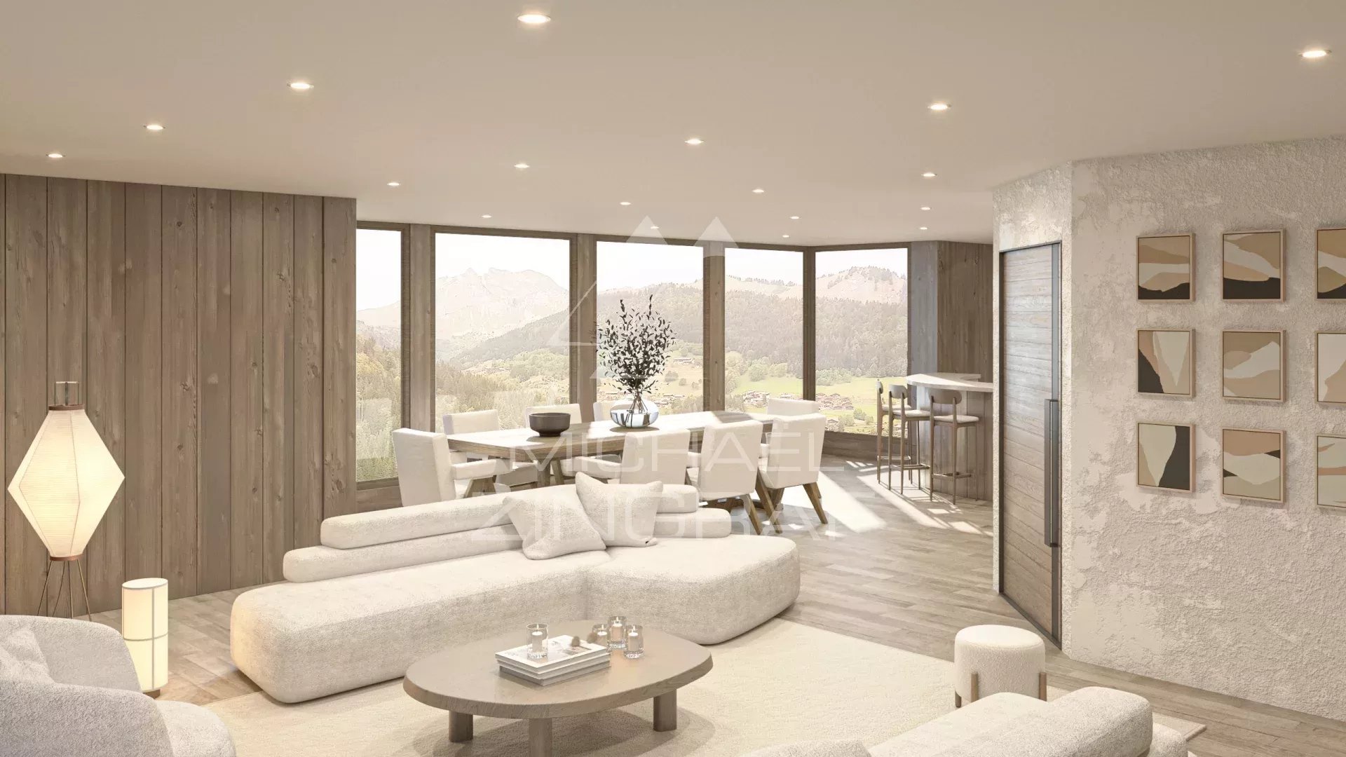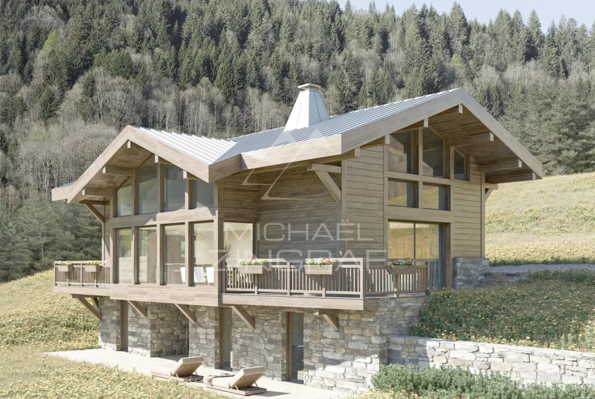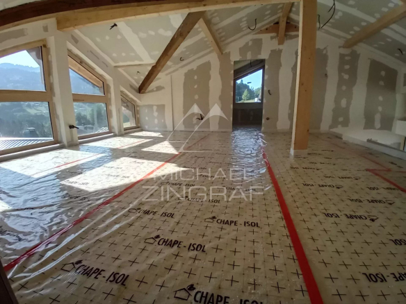 Michaël Zingraf Real Estate Megève vous propose, ce chalet neuf aux très belles prestations : façade en parement de pierre, bardage en bois, chauffage et production d’eau chaude individuelle par pompe à chaleur, grande terrasse de plain pied en prolongement. Doté d’une vaste pièce de vie salon / salle à manger avec une cuisine ouverte (son cellier), cheminée, et quatre chambres en suite, une chambre invités, ainsi que des espaces d’agrément.
