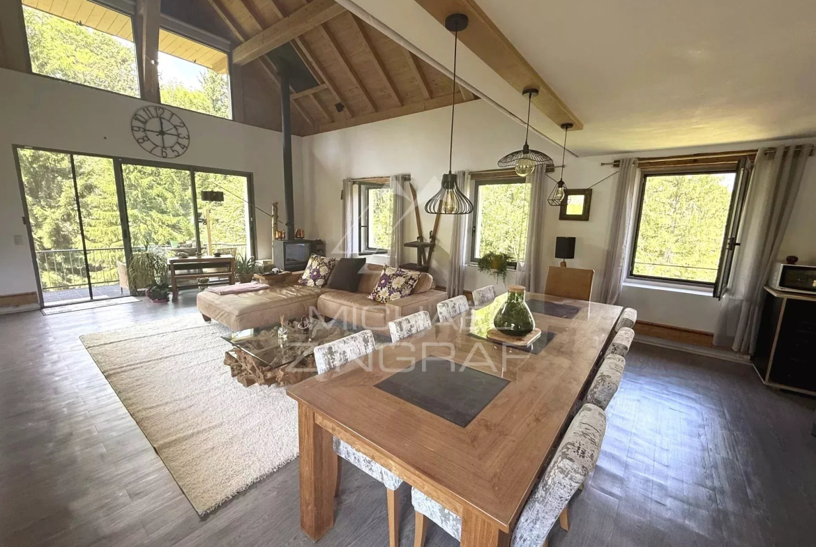 Michaël Zingraf Real Estate Megève vous propose cette grande propriété à 15 minutes en voiture de Megève, dans un environnement nature privilégié, sur près de 5000 m2 de parcelle dont une partie est constructible.