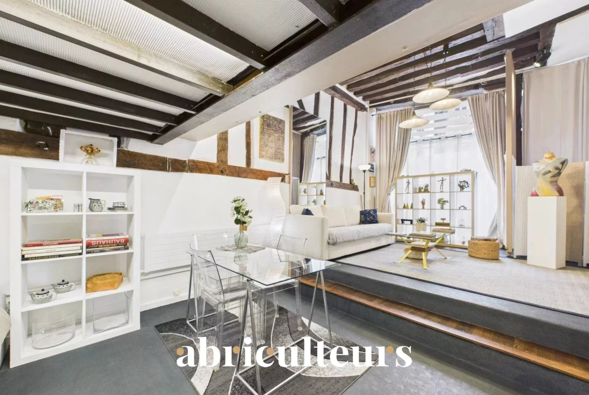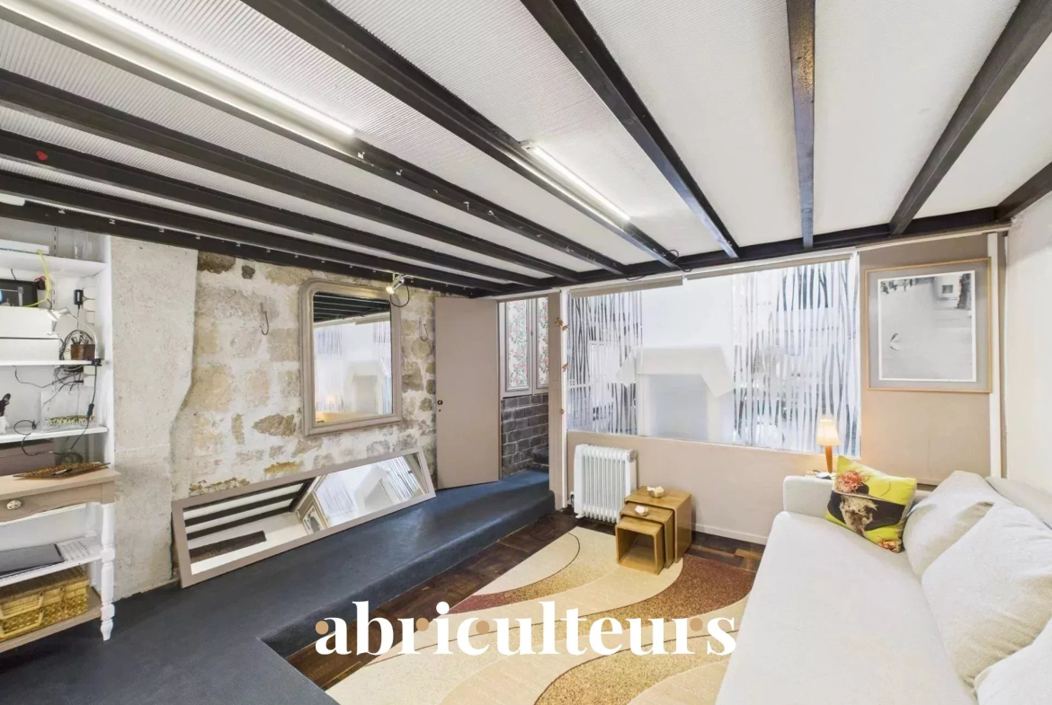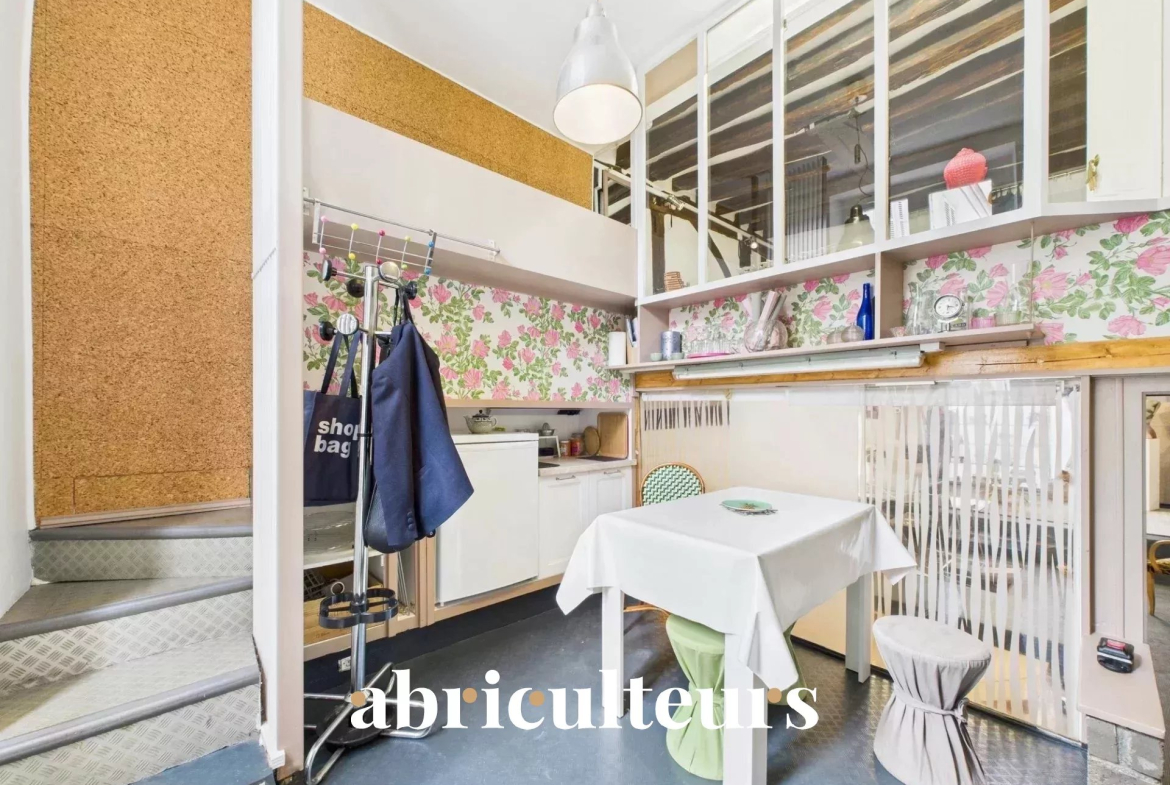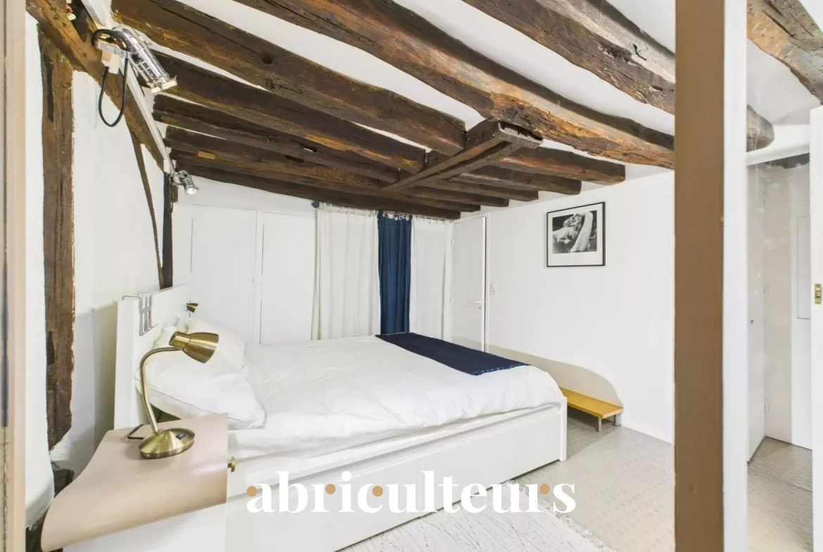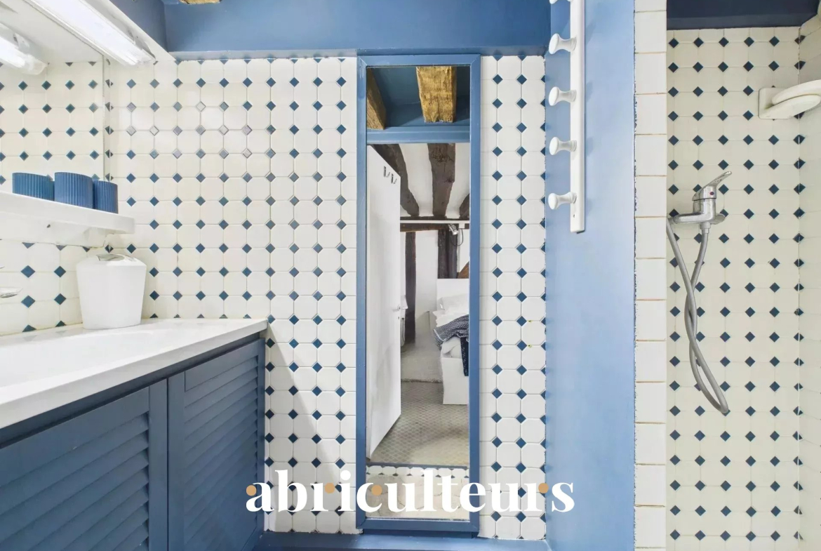L’appartement se compose d’un agréable séjour donnant sur rue, au charme indéniable avec ses poutres en bois, ses pierres apparentes et sa belle hauteur sous plafond. Une kitchenette ouverte donnant sur une cour arborée, offre un coin de verdure en pleine ville. À l’étage, une mezzanine abrite un espace nuit confortable, accompagné d’une salle de douche et de toilettes séparées.