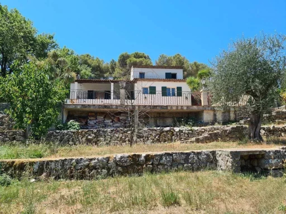 Le terrain, spacieux et entièrement clôturé, permet de stationner jusqu’à dix véhicules et comprend un jardin en restanques planté d’arbres fruitiers.