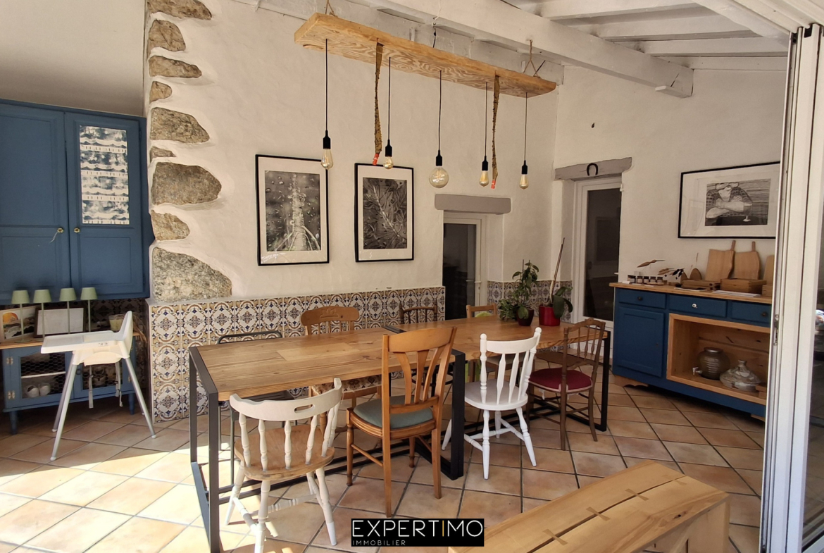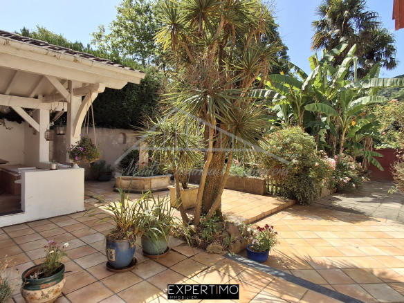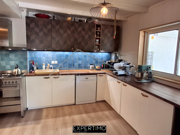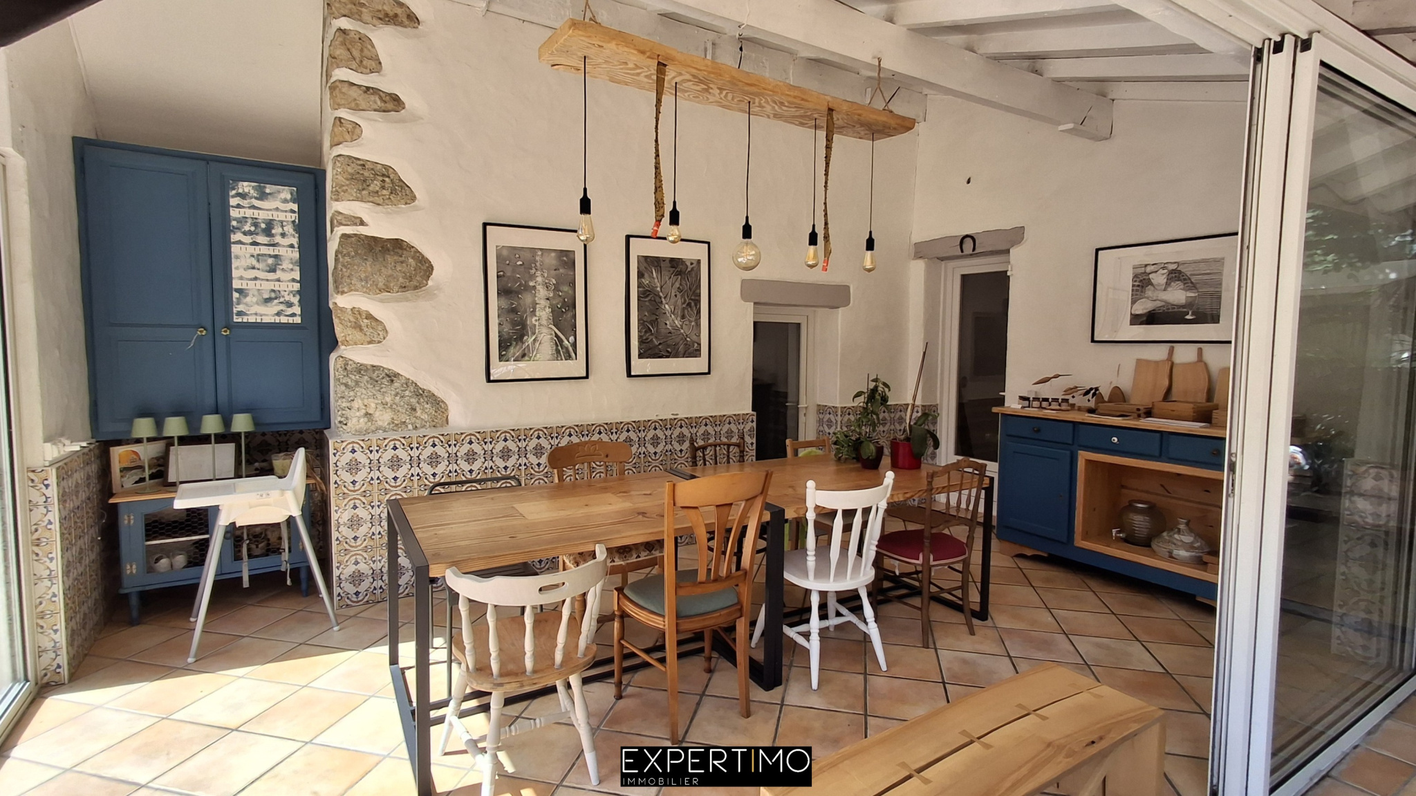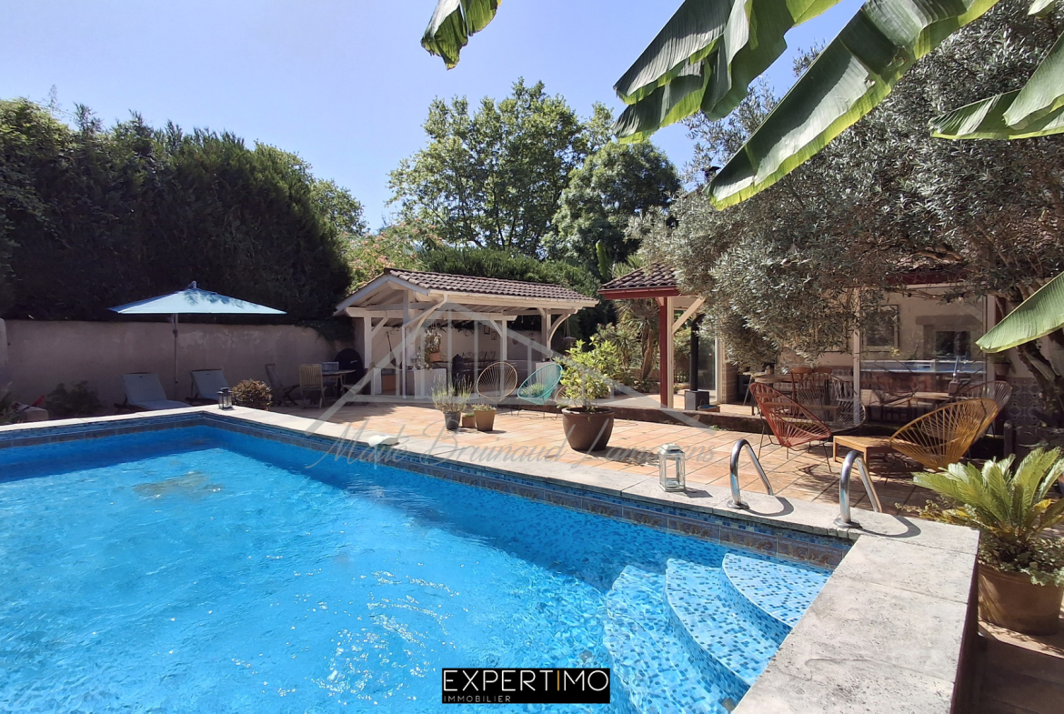 Un beau jardin, fleuri et arboré, comme un écrin de verdure protège des regards les abords des terrasses et de la piscine. Une véranda, tout en lumière plonge dans le jardin, la terrasse couverte et la piscine ; vous y serez confortablement installés en toutes saisons grâce à son poêle à bois. Pour le côté pratique, celle-ci jouxte la cuisine, parfaitement équipée et aux dimensions généreuses.