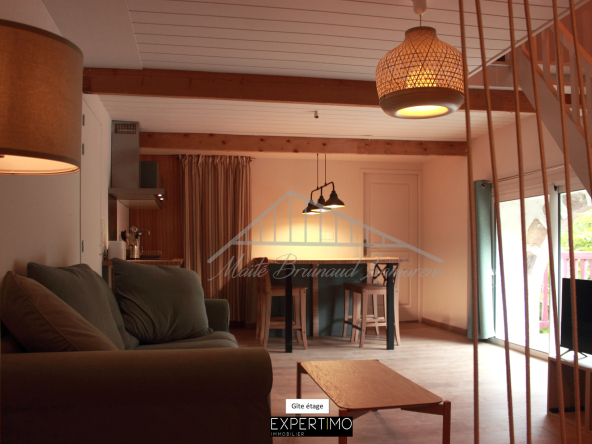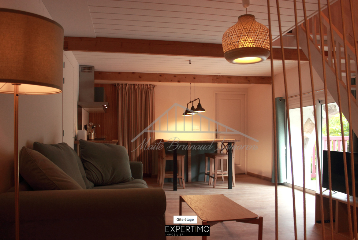 Le second gîte, en duplex, est situé au 1er étage et bénéficie également d’un accès privatif et d’un balcon orienté Sud ce qui lui apporte une belle luminosité.