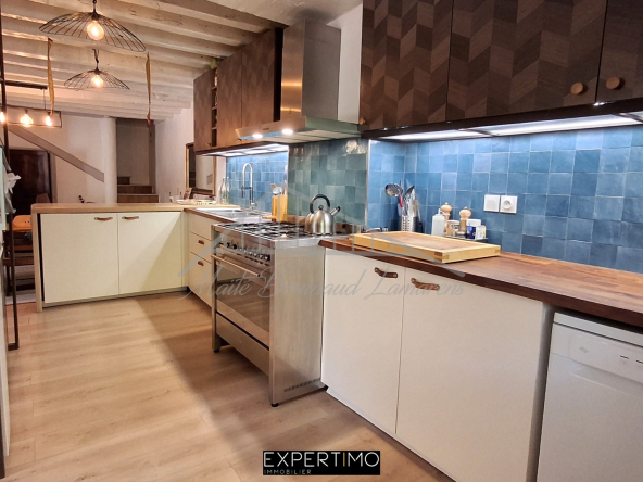 Dans l’ensemble de la maison, beaucoup de charme est apporté par de nombreux aménagements, notamment en bois de qualité et parfaitement uniques, fabriqués par un menuisier.