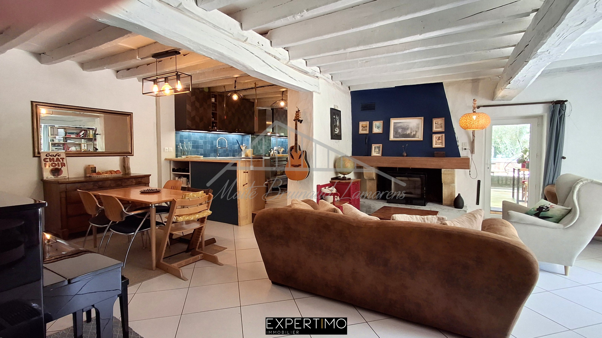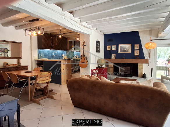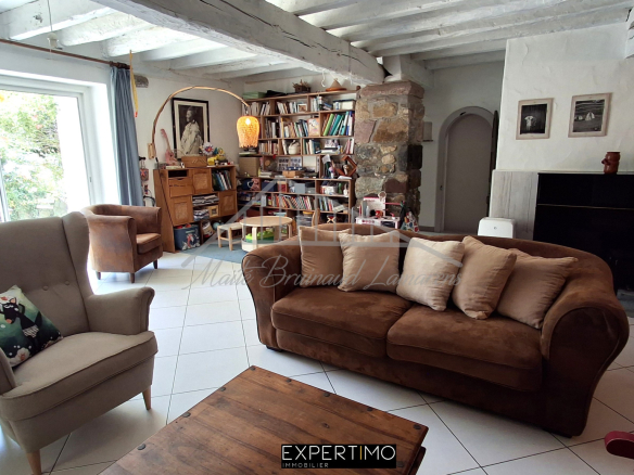 Pour la partie habitation principale, elle se compose d’un séjour douillet au coin de la cheminée, de la cuisine et de la véranda ainsi que d’un WC et d’une salle-d’eau. A l’étage, deux chambres, une salle-de-bains et un wc séparé.