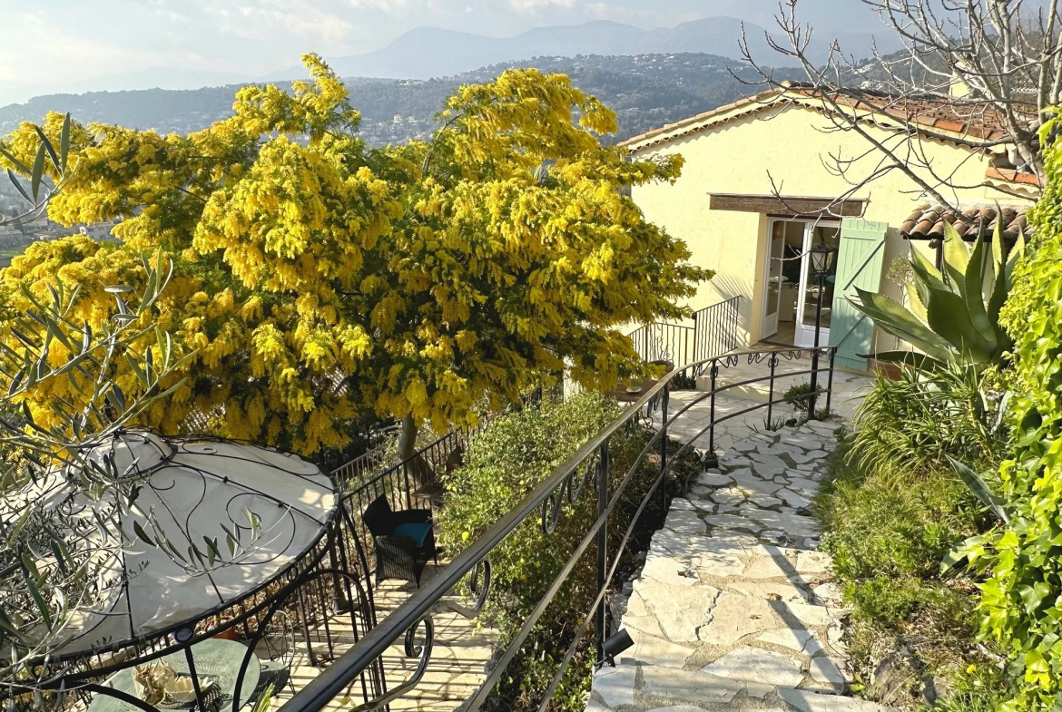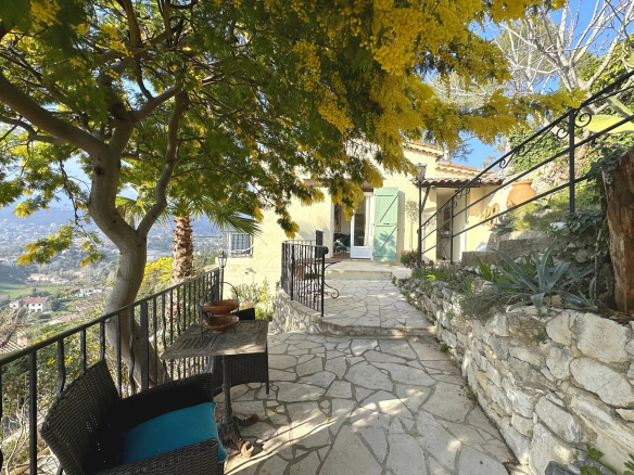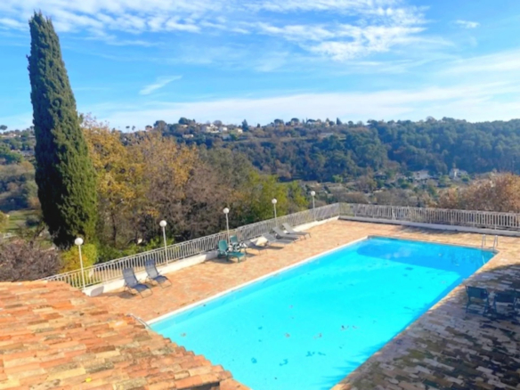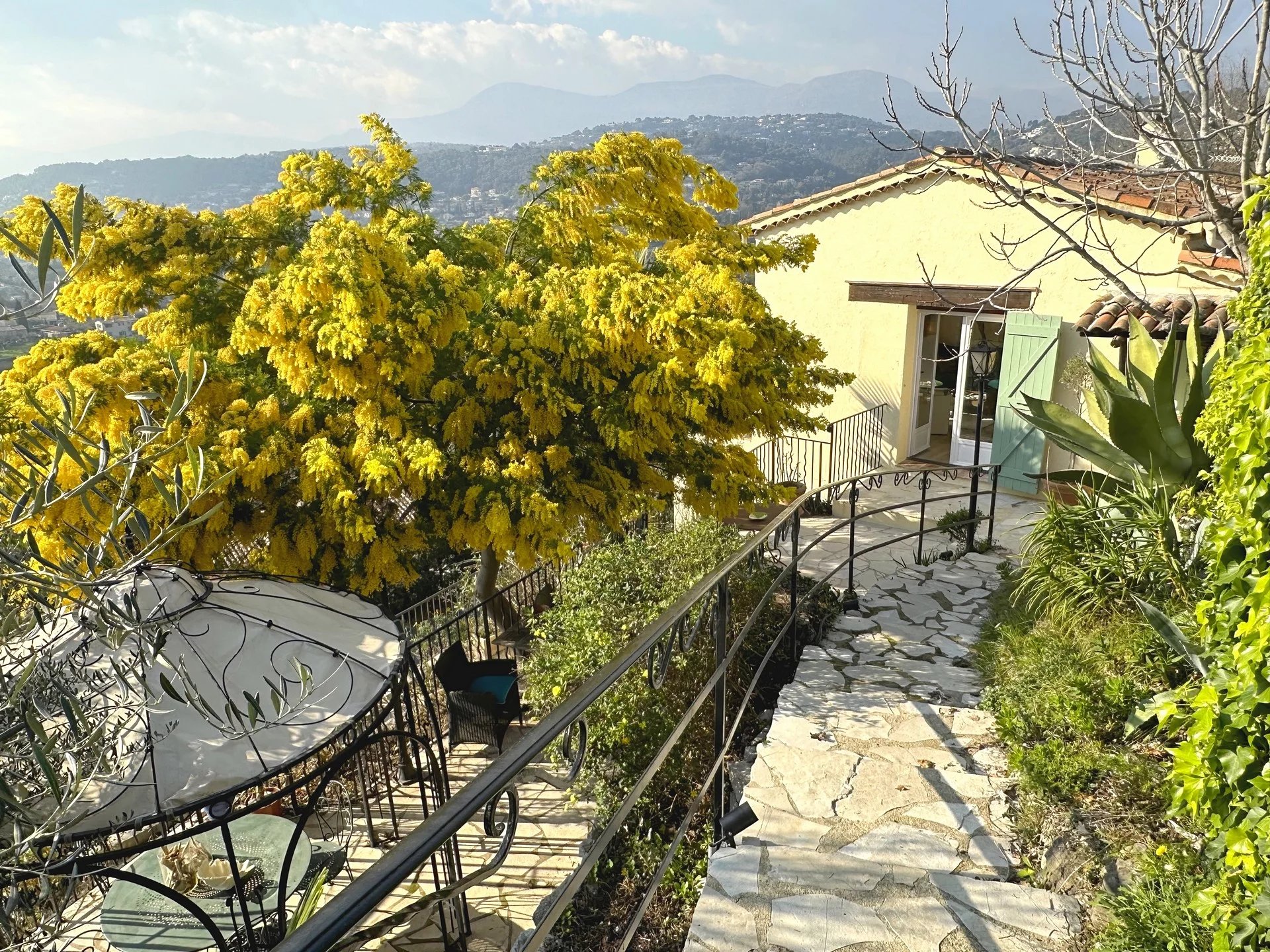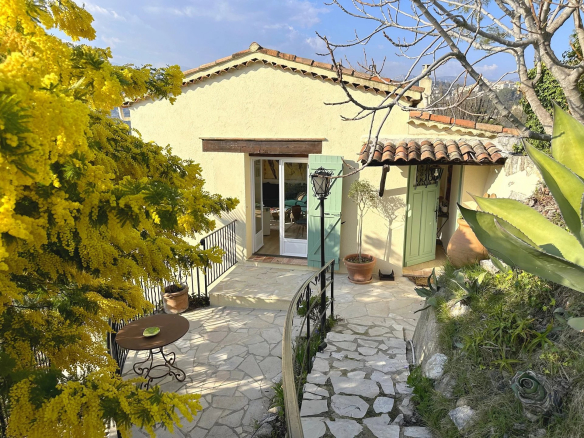 Au sein d’un domaine sécurisé avec piscine commune et proche du village de Saint-Paul de Vence, petite maison pleine de charme, offrant de belles vues dégagées sur la campagne environnante. Elle se compose d’un salon avec poutres apparentes ouvrant sur une terrasse, une cuisine équipée, 2 chambres (une chambre avec rideaux occultants) et 2 salles de douches.