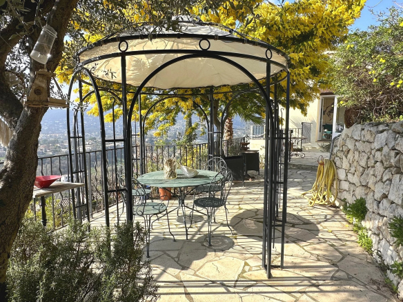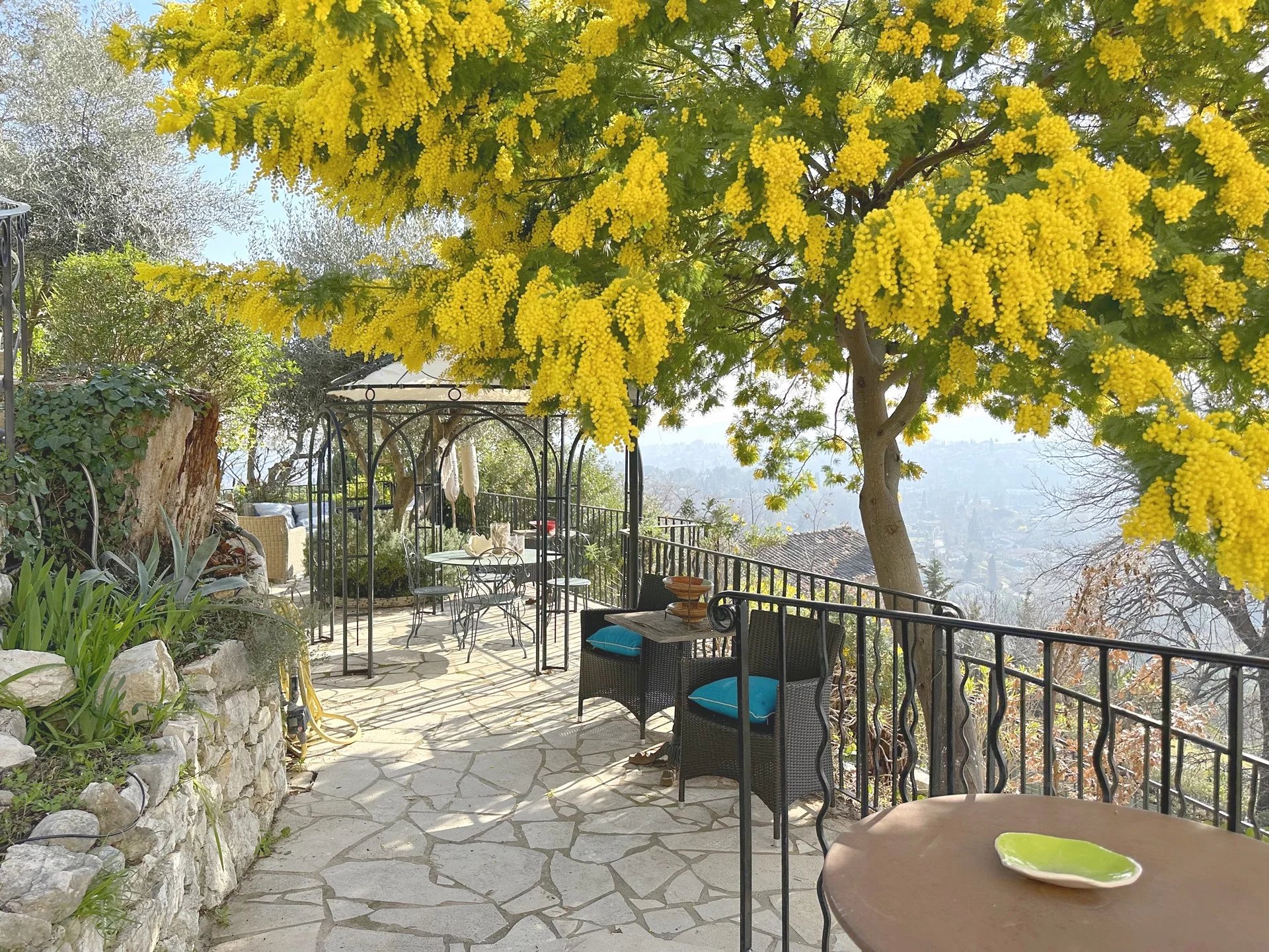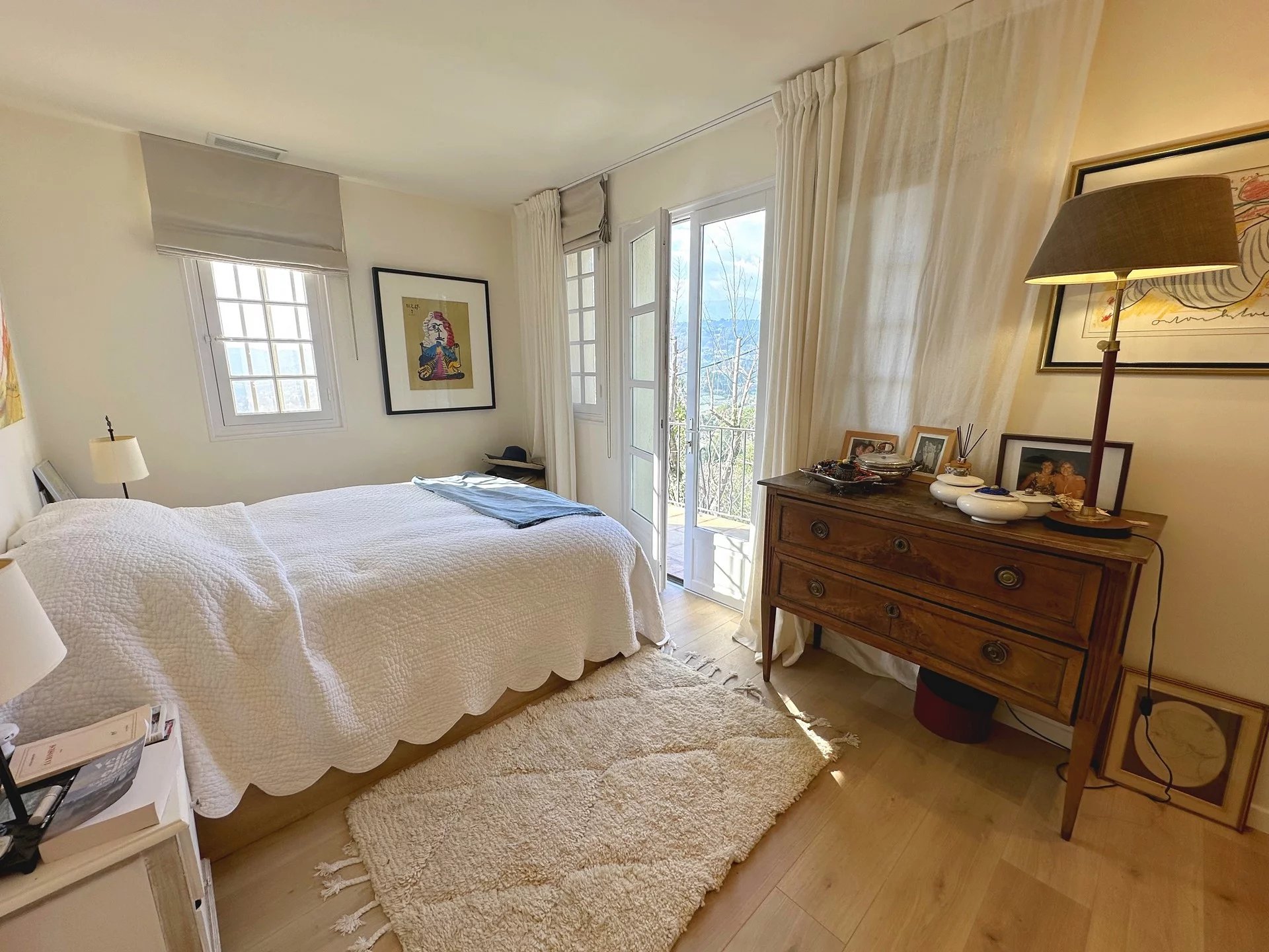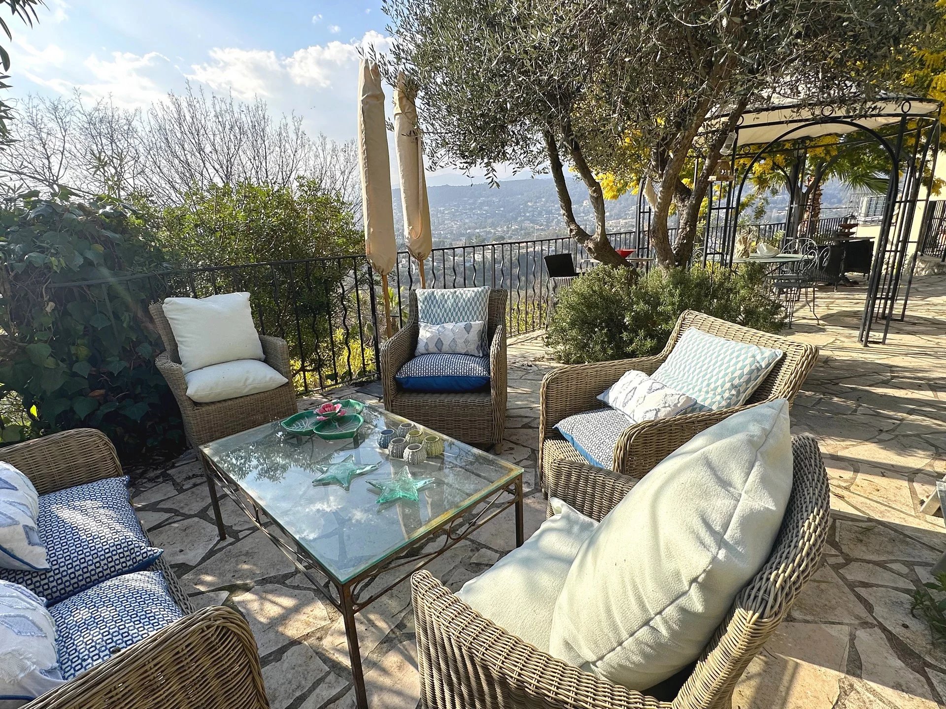 Au sein d’un domaine sécurisé avec piscine commune et proche du village de Saint-Paul de Vence, petite maison pleine de charme, offrant de belles vues dégagées sur la campagne environnante. Elle se compose d’un salon avec poutres apparentes ouvrant sur une terrasse, une cuisine équipée, 2 chambres (une chambre avec rideaux occultants) et 2 salles de douches.
