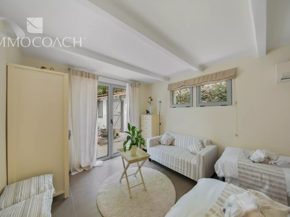 En étage, un hall d’entrée donnant sur une belle pièce de vie de 50 m² traversante avec une cuisine US s’ouvrant sur deux terrasses , une grande chambre parentale avec une salle de bain ensuite. La cerise sur le gâteau est une annexe avec une chambre en suite avec salle d’eau totalement indépendante pouvant accueillir vos invités.