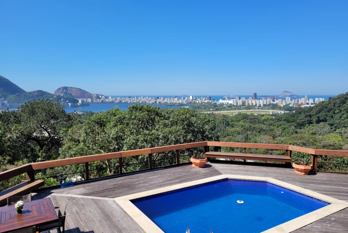 Au cœur de la ville merveilleuse de Rio de Janeiro, dans les hauteurs du charmant quartier de Jardim Botânico, cette maison type chalet offre une vue unique à 180 degrés. Son emplacement, au bout d’une rue sans issue, offre un silence absolu, entouré par la nature, sur un terrain de 1 340 m2.