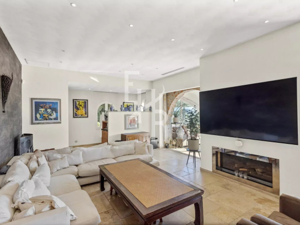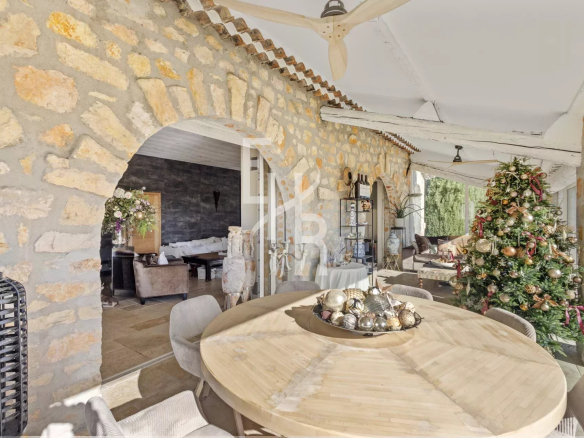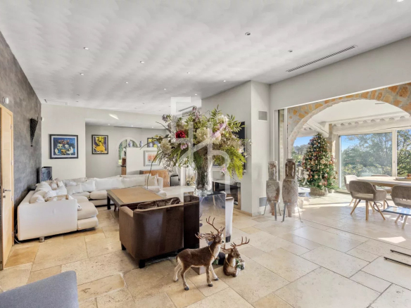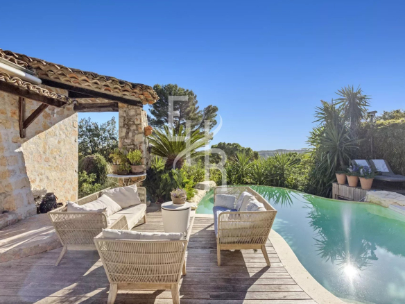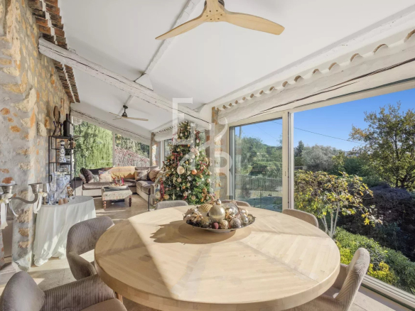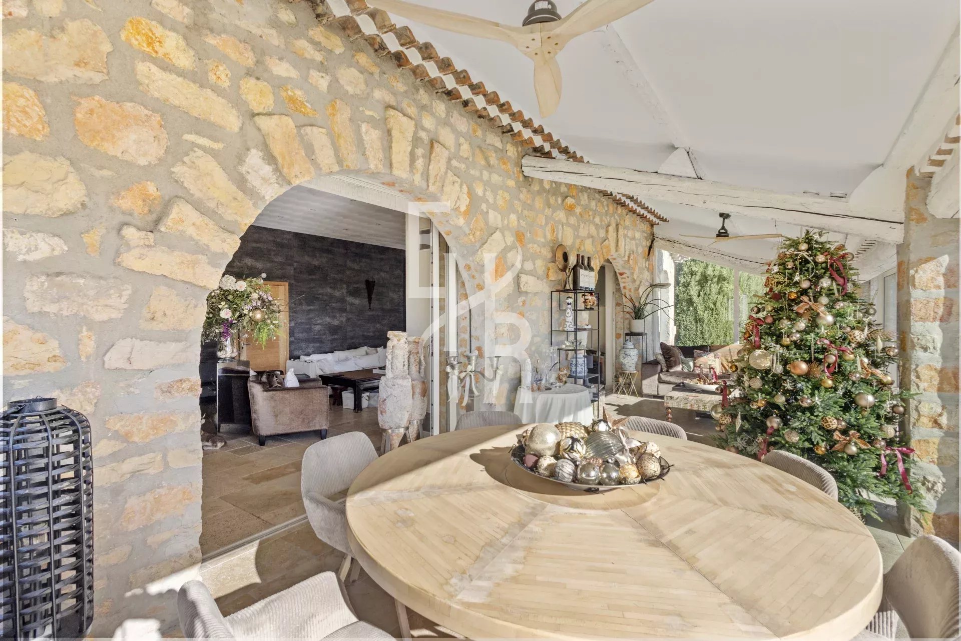 Coup de cœur pour cette authentique villa provençale située dans un quartier prisé et calme, à quelques minutes du vieux village de Mougins et de toutes les commodités. Édifiée sur deux niveaux, elle offre environ 200 m² habitables sur un terrain d’environ 1200 m². Au niveau principal, elle se compose d’un grand salon avec cheminée, d’une salle à manger, d’une terrasse-loggia aux grandes baies vitrées, agrémentée d’un salon d’hiver et d’un coin repas ensoleillé avec une jolie vue sur la nature environnante. Une cuisine professionnelle s’ouvre sur les pièces à vivre et sur une belle terrasse, une jolie piscine, un jacuzzi surélevé sur un bâti qui abrite une chambre supplémentaire, offrant une échappée sur la mer. Barbecue. Une suite parentale avec accès direct à la terrasse, ainsi qu’une seconde chambre avec sa salle de bain complètent cet espace principal. À l’étage inférieur une entrée indépendante mène à une chambre en suite avec son coin séjour-cuisine et la possibilité de connecter cet espace à l’étage principal. Garage fermé, nombreuses places de stationnement.Accès facile et rapide.
