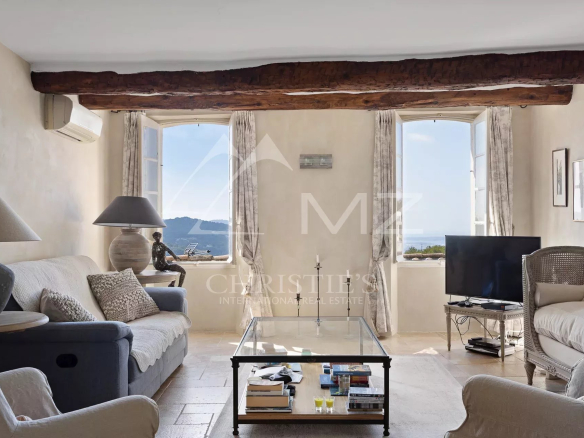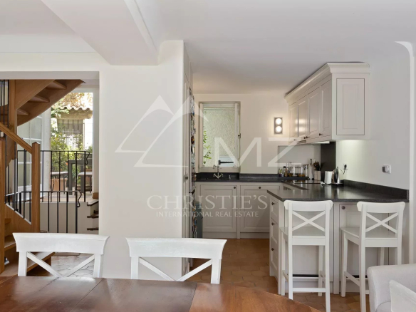La deuxième maison comporte, au rez-de-chaussée, une cuisine avec coin repas. À l’étage, deux chambres et une salle de douche. Le dernier étage bénéficie d’une chambre et d’un coin salon avec une très belle vue sur les toits du village ainsi qu’un aperçu mer.