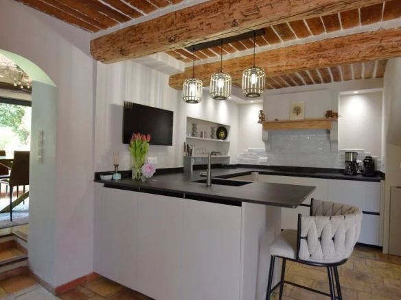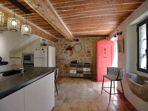 Piscine, cuisine d’été, charmants bassins à poissons, oliviers et arbres fruitiers composent un décor naturel d’exception. Une roulotte aménagée ajoute une touche bohème et rare, parfaite pour recevoir ou créer un espace indépendant.