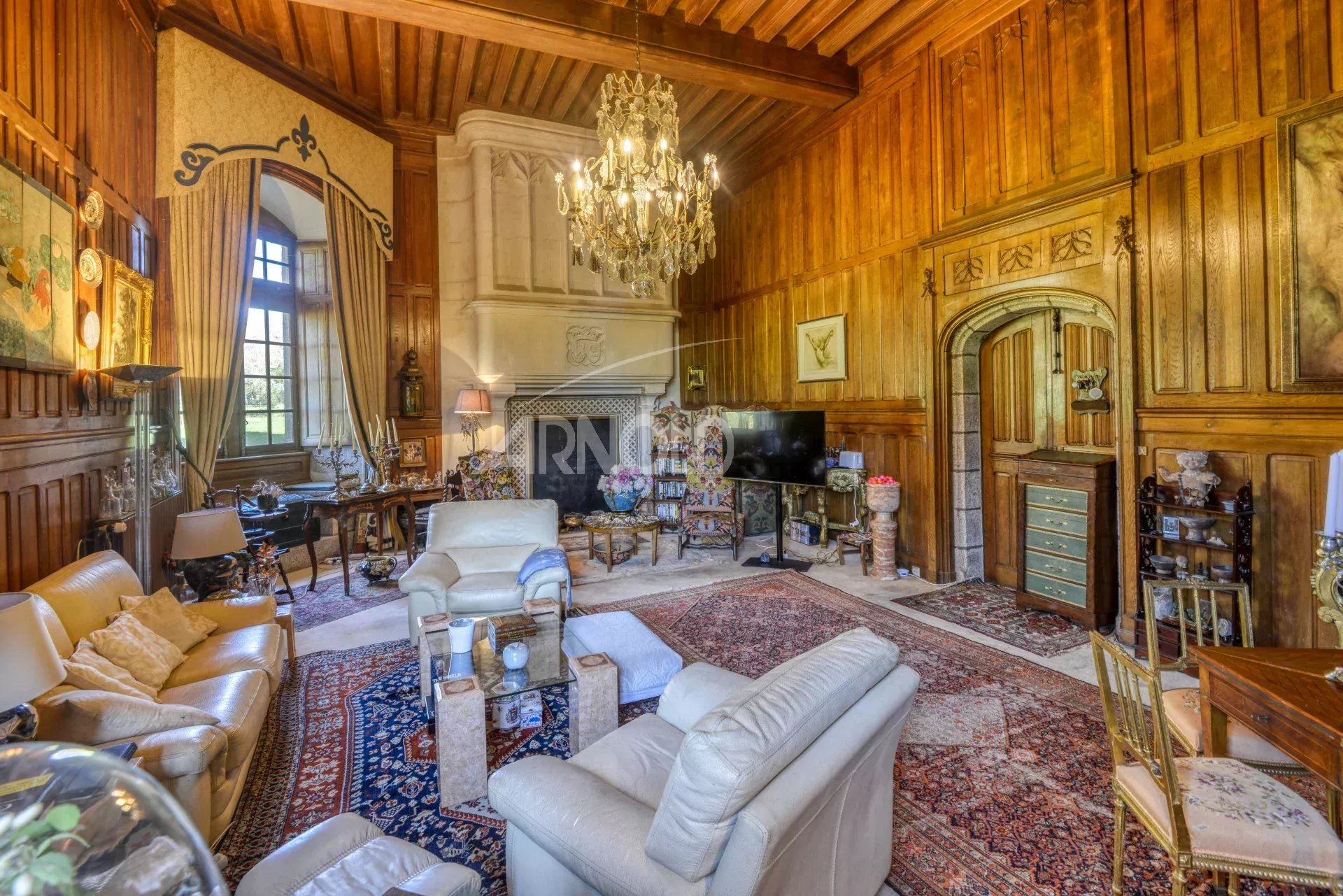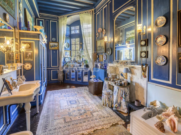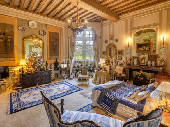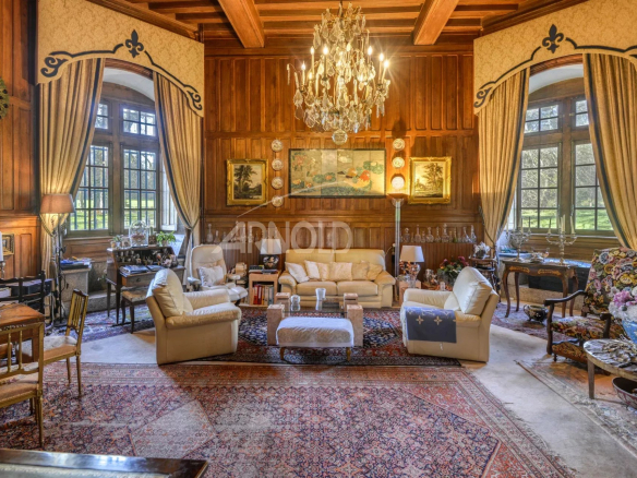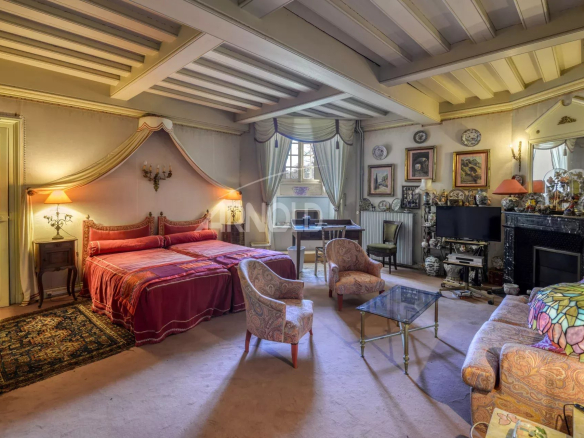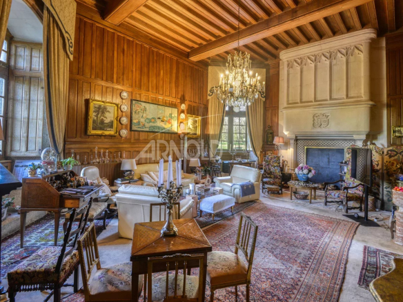 Ce bien d’exception d’une surface d’environ 300 m2, se compose au rez-de-chaussée d’un vestibule, d’une somptueuse pièce de vie, autrefois la Salle des Gardes ornée d’une cheminée monumentale fonctionnelle et agrémentée de plafonds à la française.