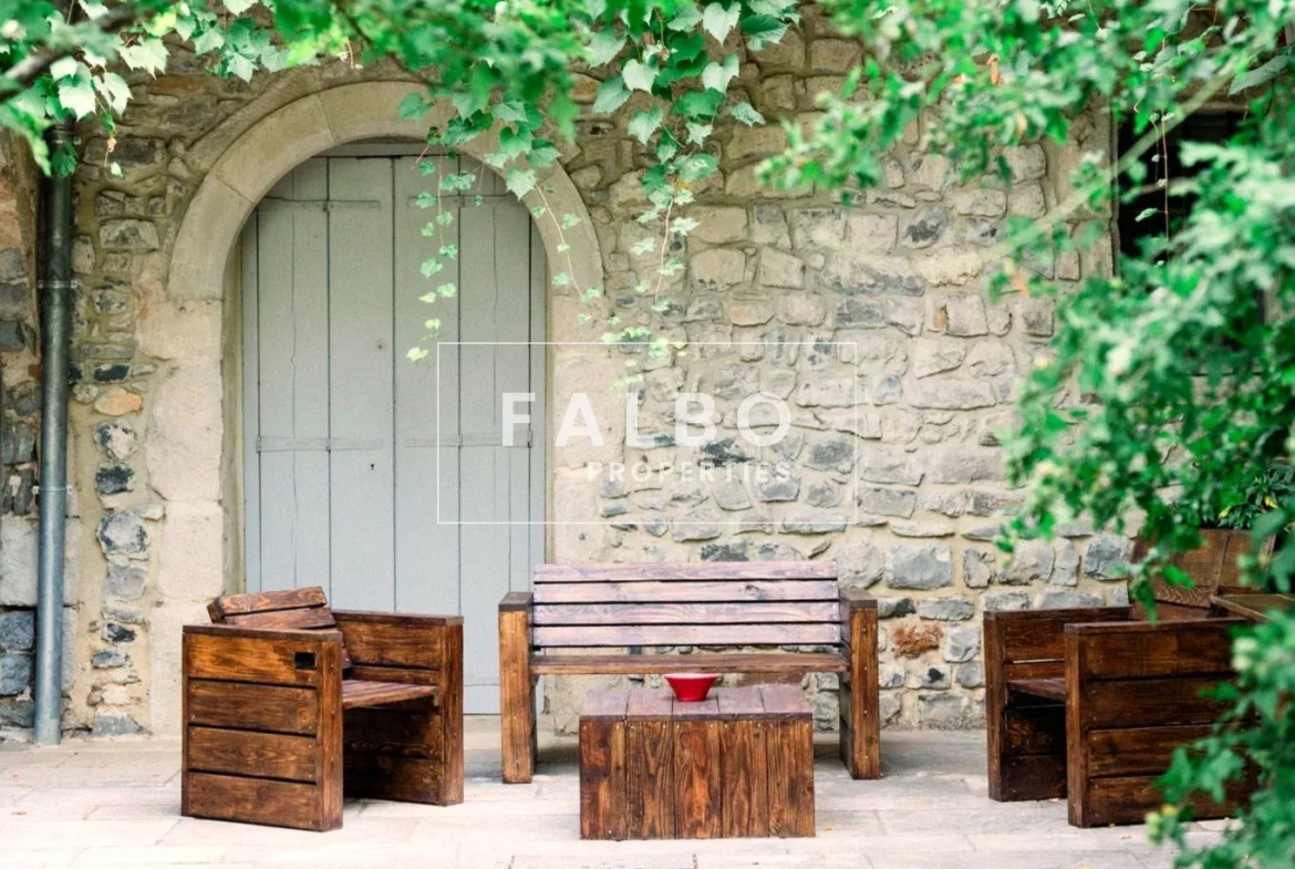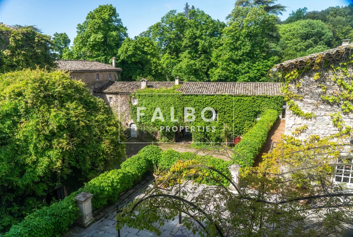 A la croisée des hauts sites touristiques du Gard, aux portes du parc national des Cévennes, de l’Ardèche, de la vallée du Rhône et de la Provence, proche de sites classés au Patrimoine mondial de l’humanité par l’Unesco et de quelques-uns des plus beaux villages de France, à dix minutes d’Anduze et moins d’une heure des gares et aéroports de Nîmes et Montpellier. La propriété, dont les premières pierres furent posées au XIIe siècle, est traversée par un GR et offre plusieurs options de balade pédestre jusqu’à Anduze ou sur de nombreux autres chemins de randonnée.