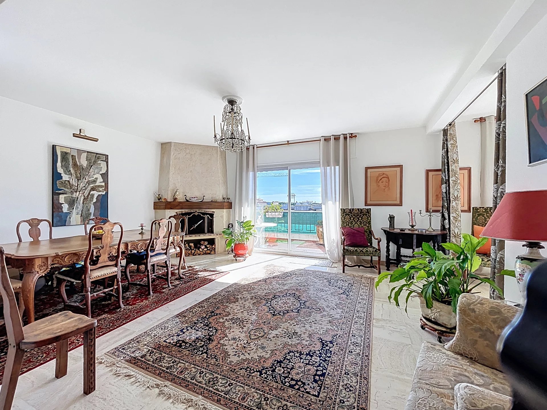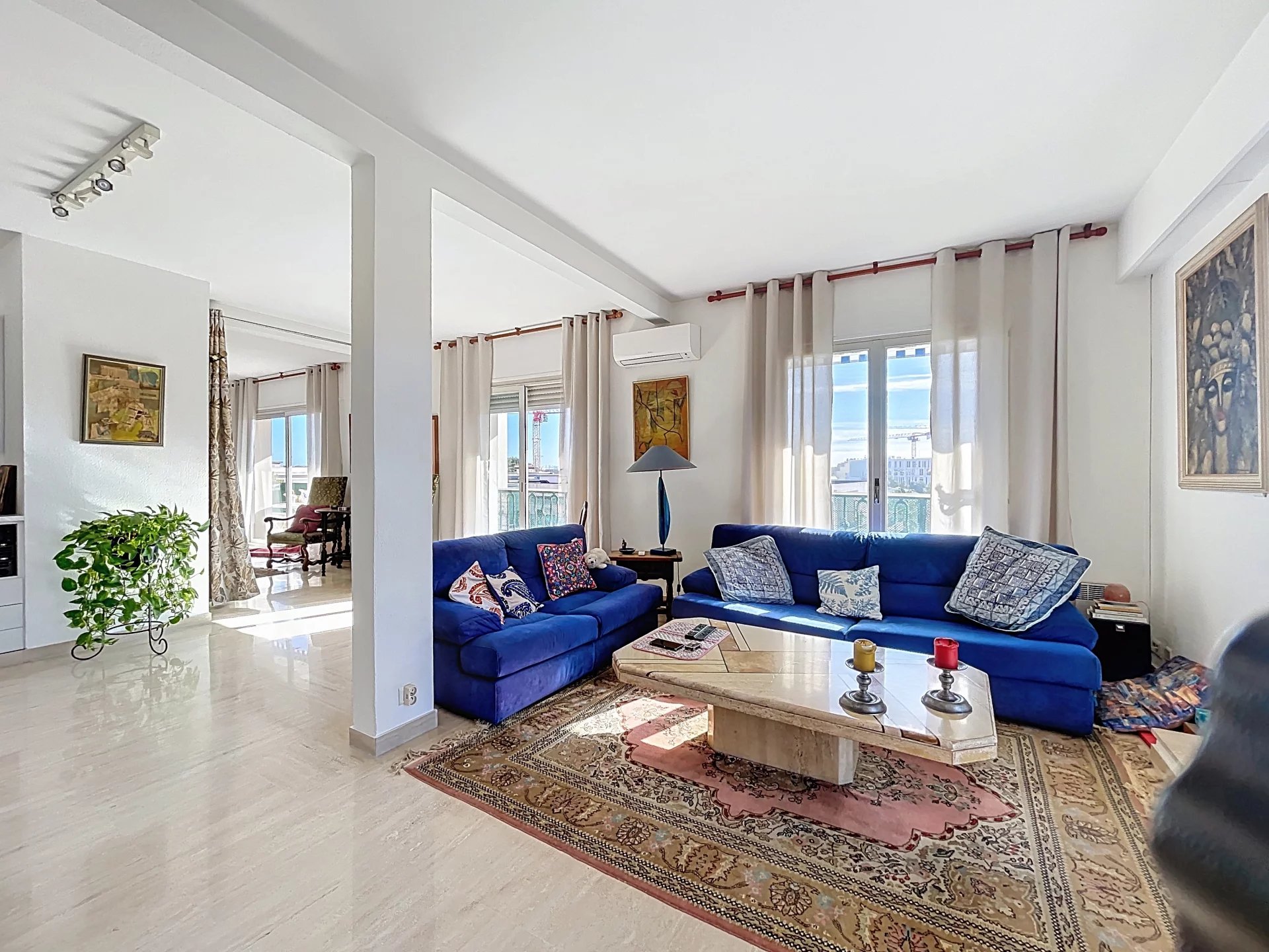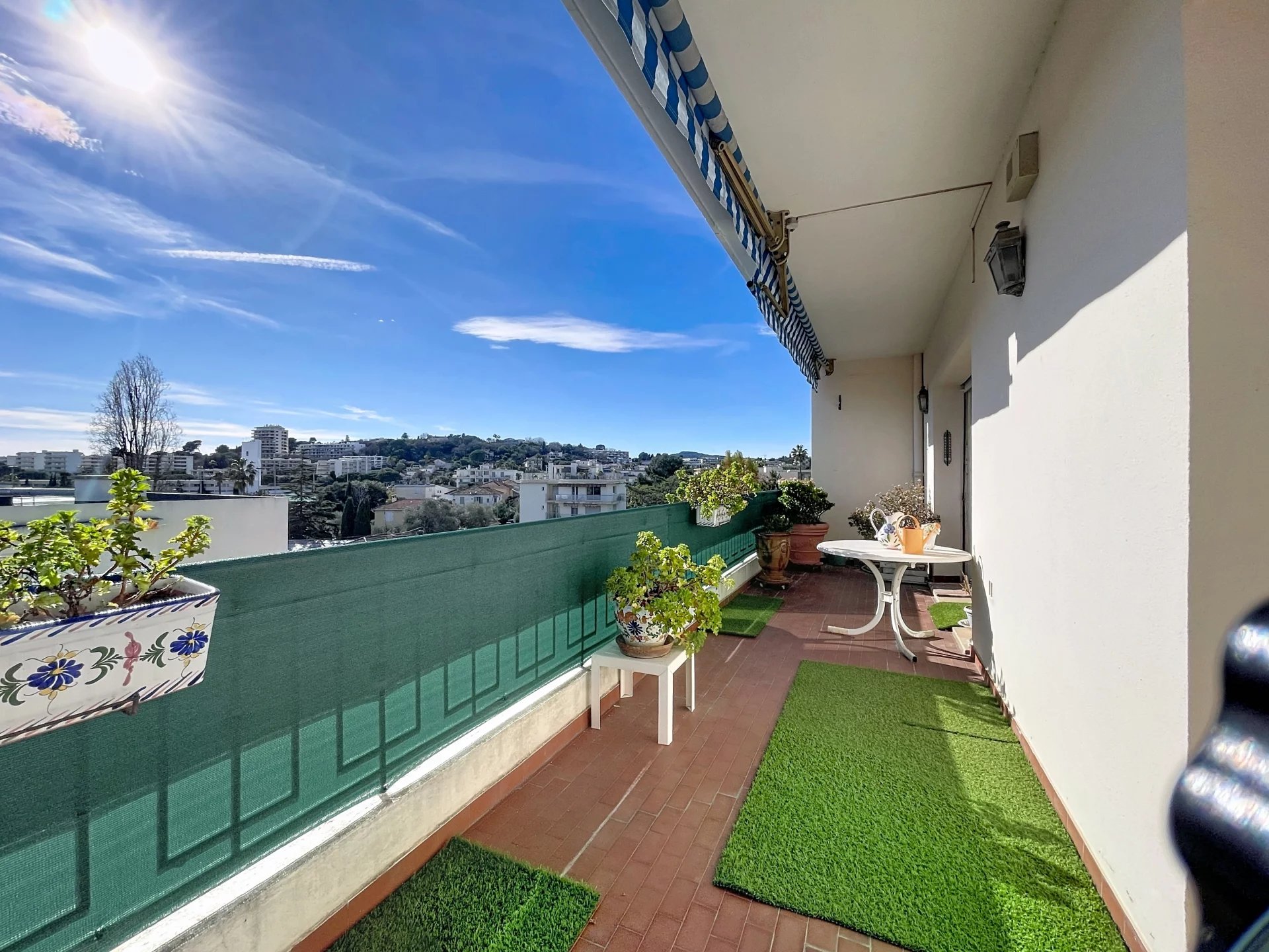 Co-exclusivité. Rare sur le marché. Situé dans une petite copropriété avec ascenseur, proche des commerces et du centre-ville d’Antibes, appartement traversant de 3/4 pièces d’une superficie de 154 m2 en 4ème et dernier étage avec balcons et terrasses sur 3 cotés, dont la principale et magnifique terrasse de 65 m2 avec vue montagnes et vue latérale sur la mer.