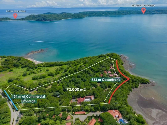 ✨ COMPLEXE HÔTELIER VISTA BAHIA — PLAYA PANAMÁ, GOLFE DE PAPAGAYO, COSTA RICA — Situé en première ligne de mer à Playa Panamá, dans la région de Guanacaste au cœur du prestige golfe de Papagayo, le complexe hôtelier Vista Bahia représente une opportunité d’investissement hôtelier d’exception sur l’une des côtes les plus recherchées d’Amérique centrale. Sur un terrain total de 72 000 m², le complexe dispose actuellement de 32 unités hôtelières opérationnelles de 60 m² chacune, avec un plan directeur approuvé pour une extension à 152 unités (100 nouvelles unités d’hébergement et 20 espaces commerciaux), pour une surface de construction totale approuvée de 15 214 m². Le complexe bénéficie de 148 mètres de plage privée avec accès direct à Playa Chorotega — une plage isolée accessible uniquement depuis la propriété ou par bateau. Les phases de développement futures incluent l’aménagement d’une marina de 25 000 m² pour l’accueil de 49 bateaux de 5 à 15 mètres (études environnementales confirmant l’absence de coraux, approbation finale en cours) et un casino déjà approuvé par l’ICT — Institut Costaricien du Tourisme. La zone accueille les établissements de référence mondiale : Four Seasons, Ritz-Carlton, Andaz et Marriott Autograph Collection Mangroove. L’aéroport international Daniel Oduber Quirós de Guanacaste (LIR) est à 25 minutes.