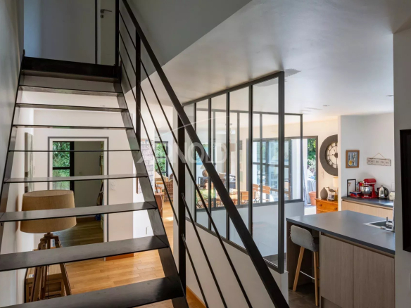 Nichée dans un environnement calme et verdoyant a quelques minutes des commerces et des transports, cette maison contemporaine développe une surface habitable généreuse d’environ 160 m² implantée sur un terrain de 742 m².