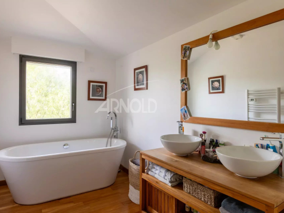 Qualité de vie recherchée et assurée pour cette maison au sein d’un domaine privé. Jolies prestations et décoration choisie, vous serez séduits!