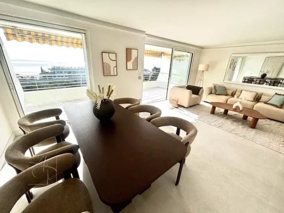 Cannes bas croix des gardes- COUP DE COEUR ASSURE POUR CE 3-4P EN DERNIER ETAGE VUE MER PANORAMIQUE SUR LES ILES DE LERINS JUSQU A L ESTEREL . APPARTEMENT ENTIEREMENT RENOVE DANS UNE RESIDENCE DE RENOM AVEC PISCINE PARC TENNIS GARDIEN. Très belles prestations pour ce beau bien traversant qui se compose d’une entrée, un double séjour, salle à manger prolongés de sa terrasse vue mer exposée sud ouest, une cuisine américaine entièrement équipée haut de gamme. deux belles chambres dont une en suite avec sa salle de douche et son wc et une autre avec sa salle de douche indépendante et wc indépendant. Pour les clients qui le souhaitent il a une a possibilité d’une troisième chambre très facilement .