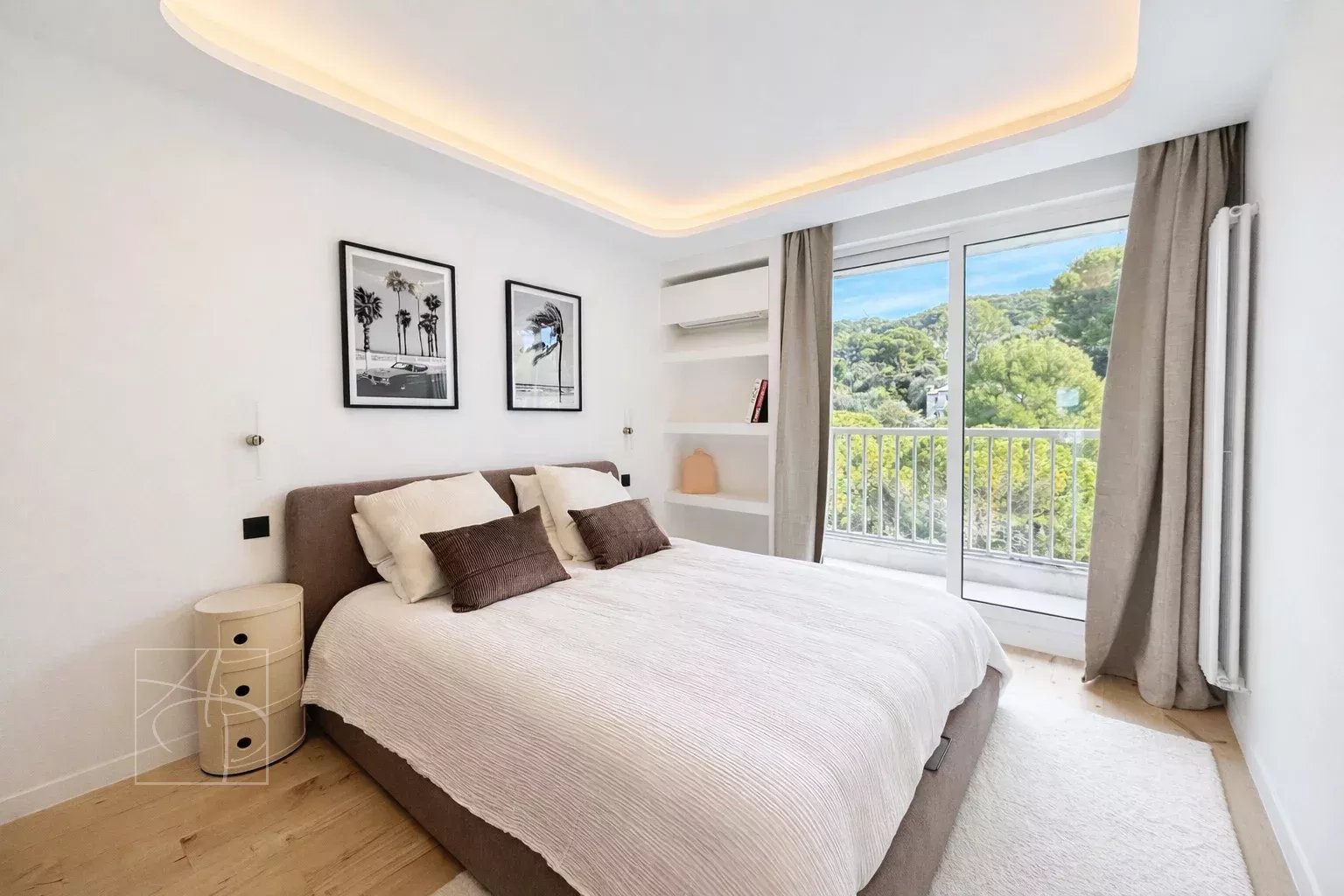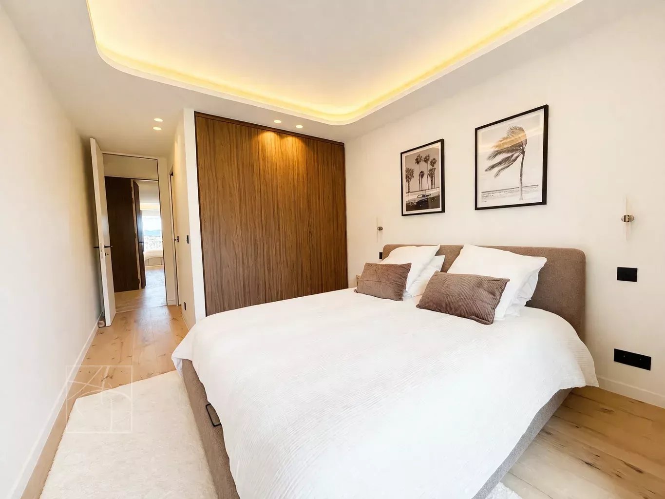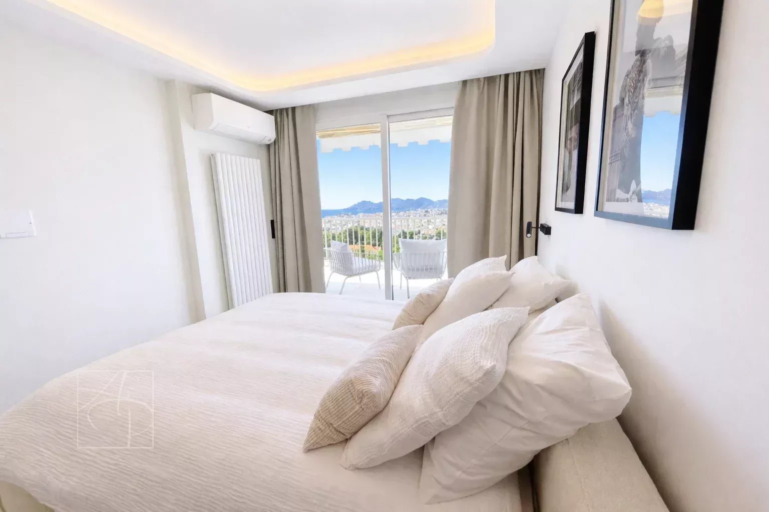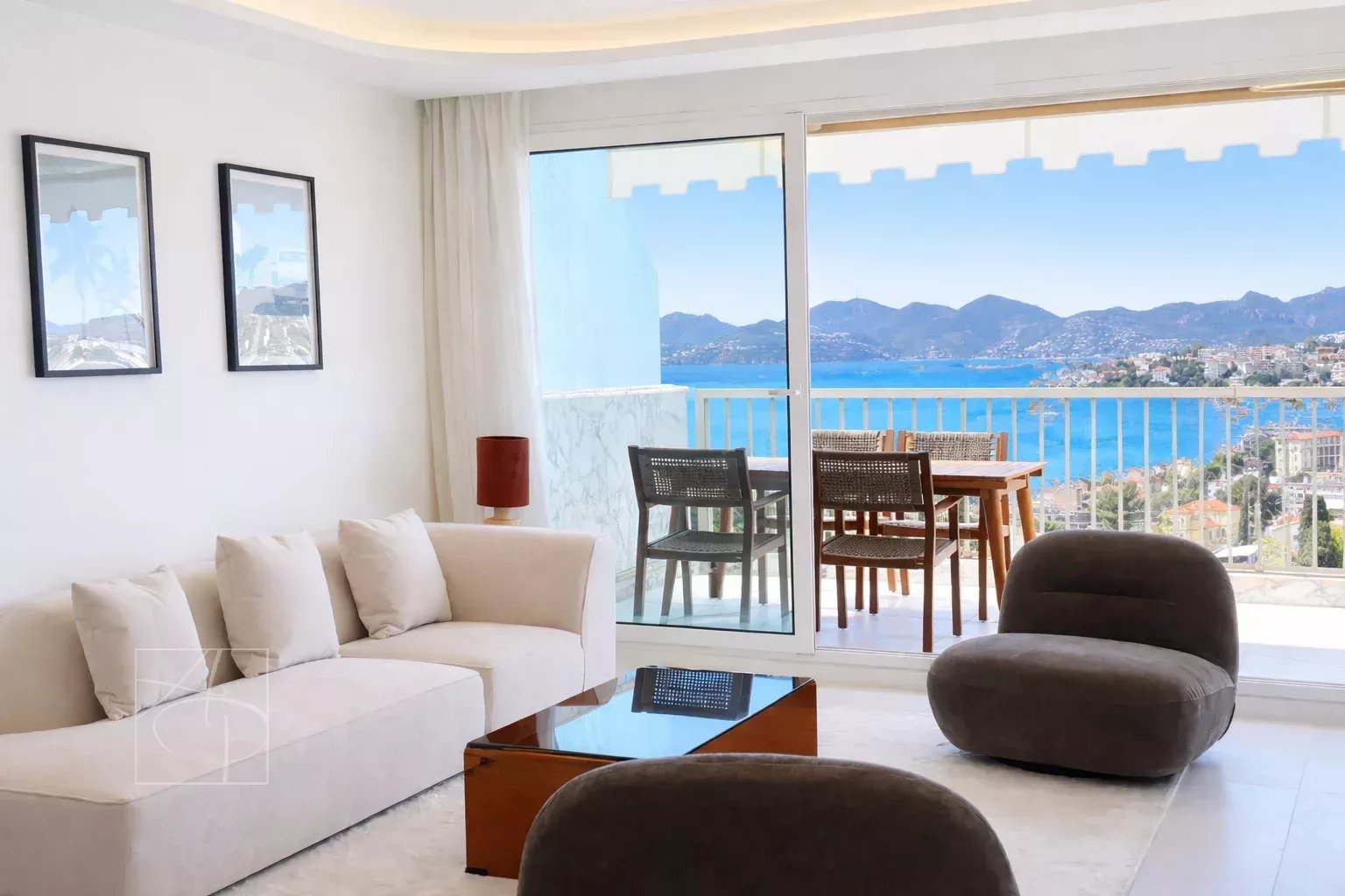 Dans une résidence de standing avec gardien 24-24h, piscine, tennis Sublime 3 pièces entièrement rénové en avant dernier étage traversant avec sa belle terrasse à ciel ouvert exposée sud-ouest. Prestations de qualité , finitions haut de gamme , cet appartement 3 pièces a tout pour vous séduire . Spacieux hall d entrée avec placards de rangement petit coin bureau, un lumineux séjour avec corniche rétro éclairée , ouvert sur une belle terrasse vue mer panoramique des îles de Lerins à L Estérel, une cuisine indépendante dînatoire entièrement équipée avec son coin repas vue verdure au calme absolu . Deux belles chambres une en suite ouverte sur la terrasse vue mer avec coin dressing et placard de rangement salle de douche, salle de bain et une autre ouverte sur un balcon vue verdure avec placard, salle de douche wc, un toilette indépendant avec son lave main . Ensemble entièrement climatisé réglage pièces par pièces . Commodités au pied de la résidence , parking collectif pour les invités avec réception 24-24. Double box au sous sol de la résidence et cave . Proche des commerces cet appartement à tout pour plaire pour s y installer en résidence principal ou secondaire .