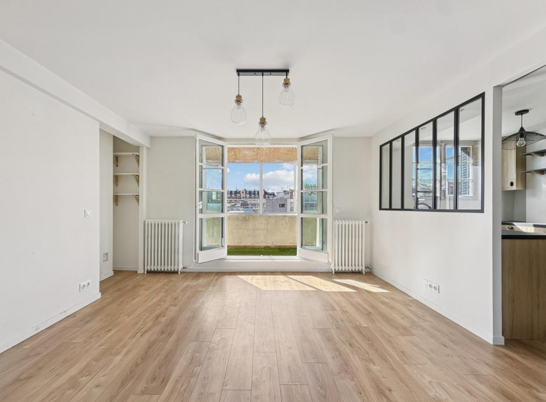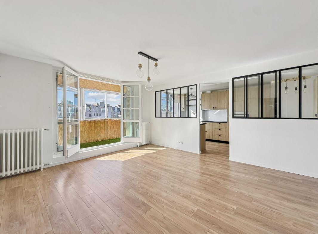 Paris 19e | F3/4 – 89,35 m² Carrez / 99,2 m² avec les extérieurs | Étage élevé avec ascenseur (9è sur 10) | Lumière, volume et rénovation de qualité (2019)