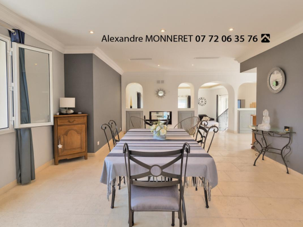CO-EXCLU – Photo embellie par IA — n’hésitez pas à demander les originales. Villa de maçon édifiée entre 2007 et 2014 sur une parcelle de 1 552 m2, idéalement située à proximité de Briconaute, Leclerc etc… Exposition dominante Sud-Est, nombreuses ouvertures, aucun vis-à-vis et aucun travaux à prévoir. De beaux matériaux nobles ont été utilisés pour la conception de cette magnifique villa. Cette maison est édifiée sur 3 niveaux comprenant : – Au 1 er niveau : garage et sous-sol aménagée en appartement de 3 pièces composé de salle à manger, cuisine ouverte, 2 chambres, salle d’eau avec water-closet – Au 2ème niveau : cuisine, salle à manger, salon, une chambre parentale avec salle de bains, water-closet invités. – Au 3ème niveau : 3 chambres, bureau, une salle de bains et water closet
