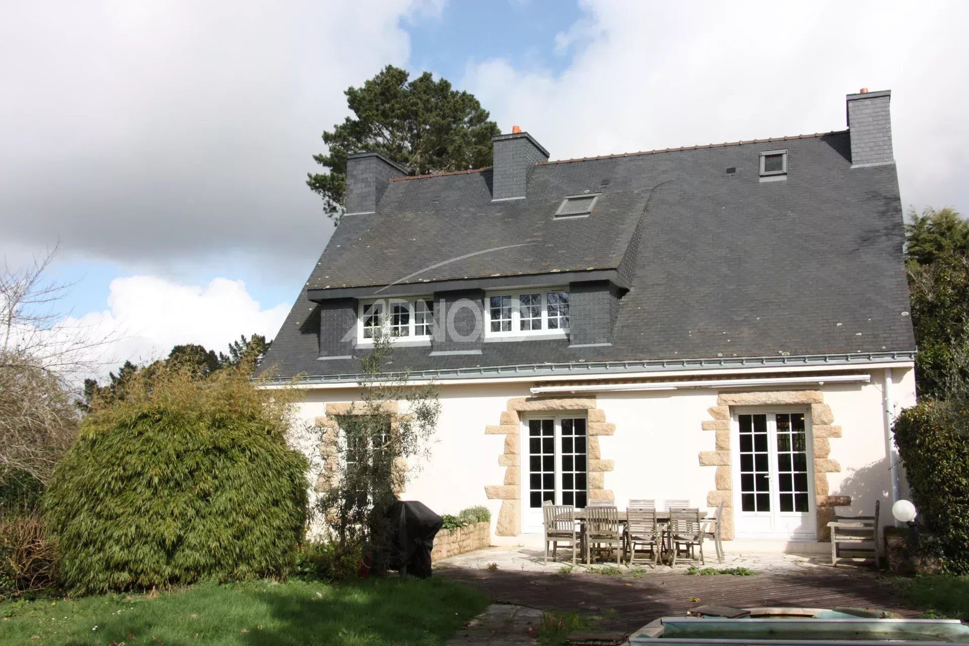 A BADEN…Dans un site très recherché, à proximité de l’exceptionnel Golfe du Morbihan et du golf de Baden. Sur un terrain de 4633 m² vous découvrirez au bout d’une allée à l’abris des regards cette maison traditionnelle avec une piscine.