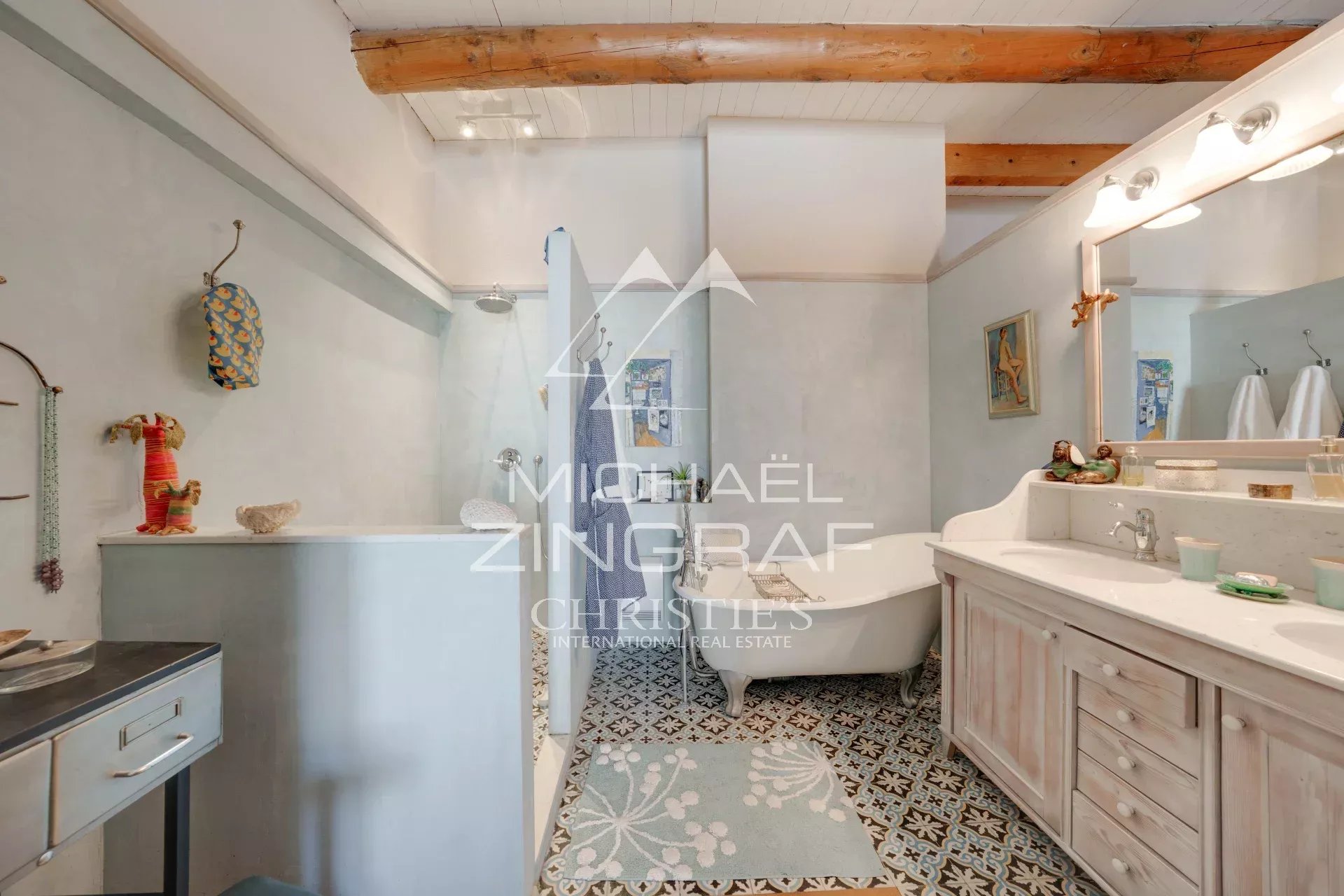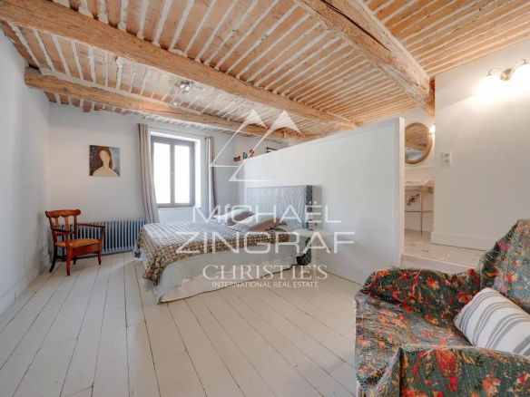 À proximité immédiate des commerces, restaurants et du marché, cette propriété bénéficie d’un emplacement recherché, alliant quiétude et art de vivre.
