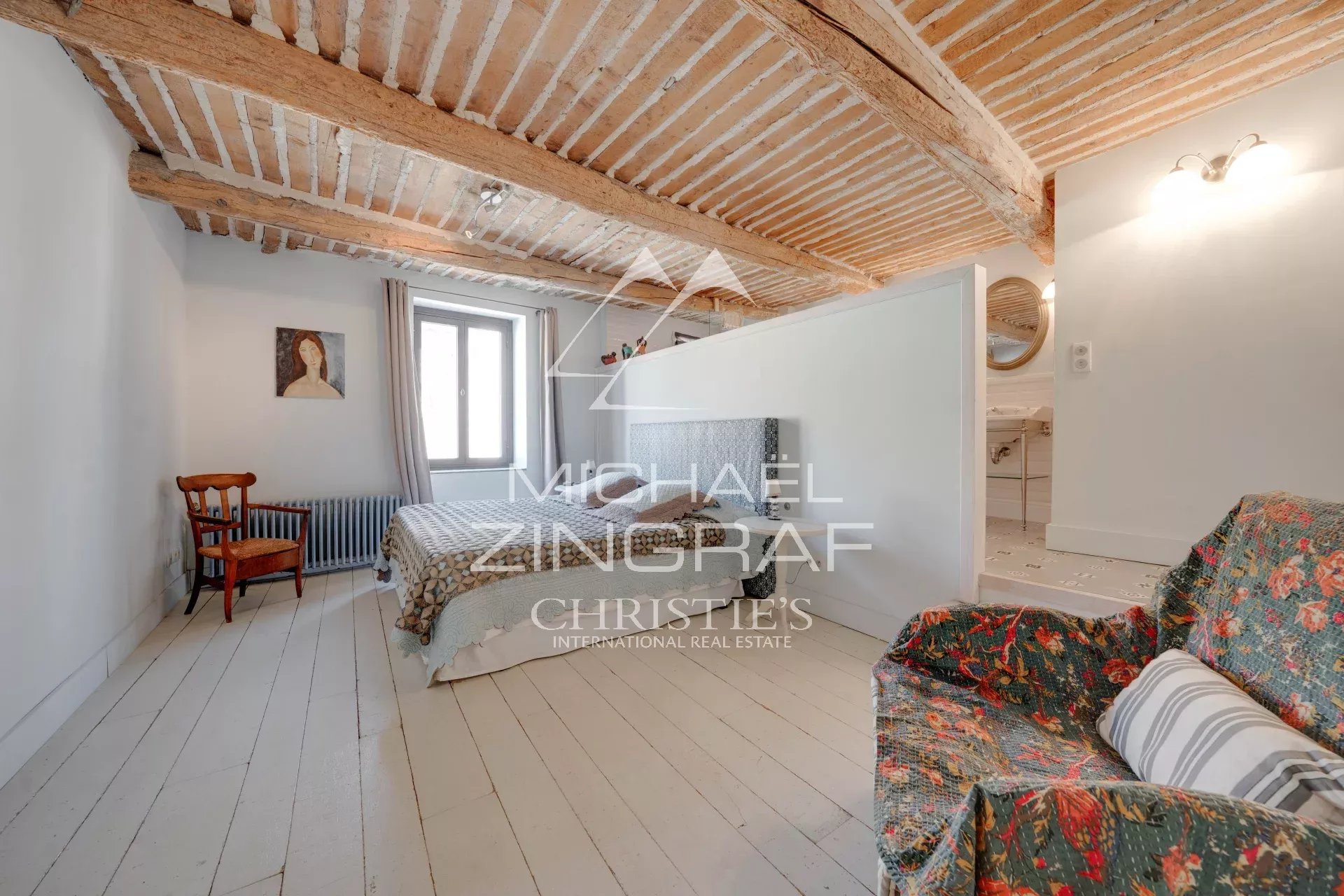 Développant environ 350 m², cette élégante maison de village du XIXe siècle déploie ses volumes généreux sur trois niveaux, mêlant avec subtilité le cachet de l’ancien et le confort contemporain. Un très bel escalier, véritable pièce maîtresse de la maison, dessert avec élégance les espaces nuit.