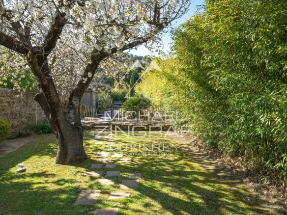 À l’extérieur, le charme opère immédiatement : un jardin confidentiel, véritable écrin de verdure, accueille une piscine ainsi qu’une cuisine d’été, invitant à la détente et aux moments privilégiés sous le soleil provençal.