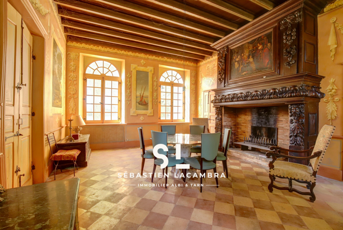 Architecture vénitienne unique dans le Tarn, soulignée par des éléments d’époque conservés (boiseries sculptées, fresques, cheminées)