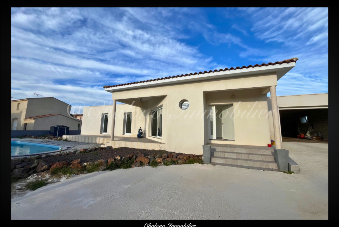 Au Grau d’Agde, dans un secteur calme et recherché, villa contemporaine de plain-pied (2016) d’environ 125 m2.