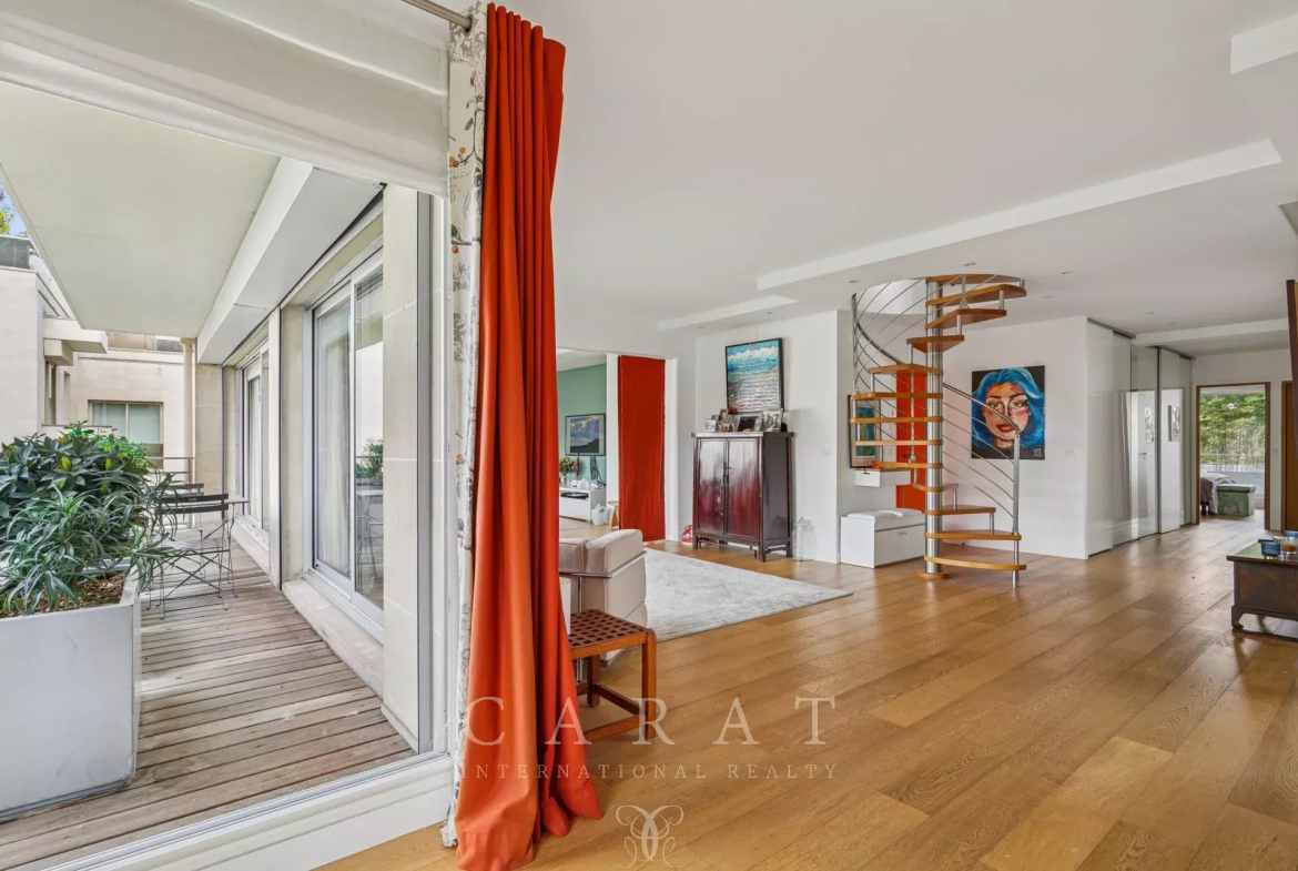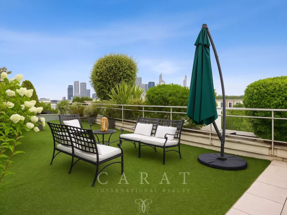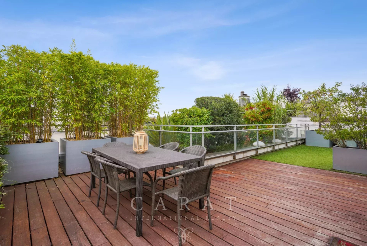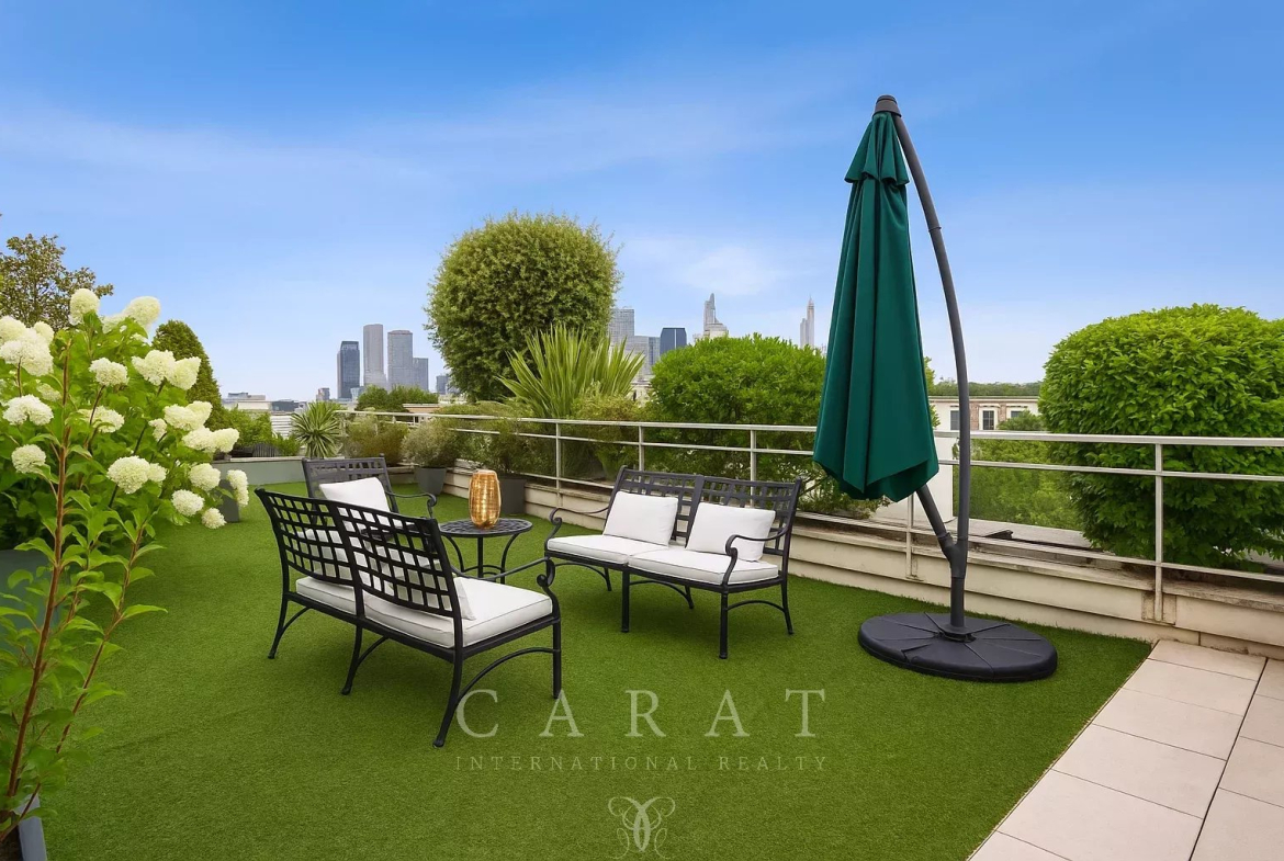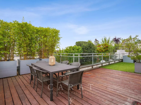 Véritable atout de ce bien : l’appartement dispose d’une terrasse privative de 175 m² sur laquelle se trouve une pièce indépendante (17,83 m²) idéale pour créer une chambre, un bureau, un atelier ou un espace détente selon vos envies.