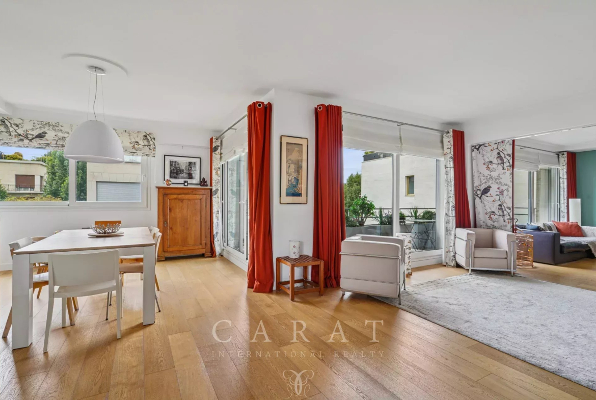 L’espace de réception, baigné de lumière, s’articule autour d’un vaste séjour de plus de 40 m² prolongé par une cuisine indépendante. Il peut distribuer jusqu’à quatre chambres, dont une suite avec salle d’eau privative, ainsi qu’une salle de bains supplémentaire et de nombreux rangements.