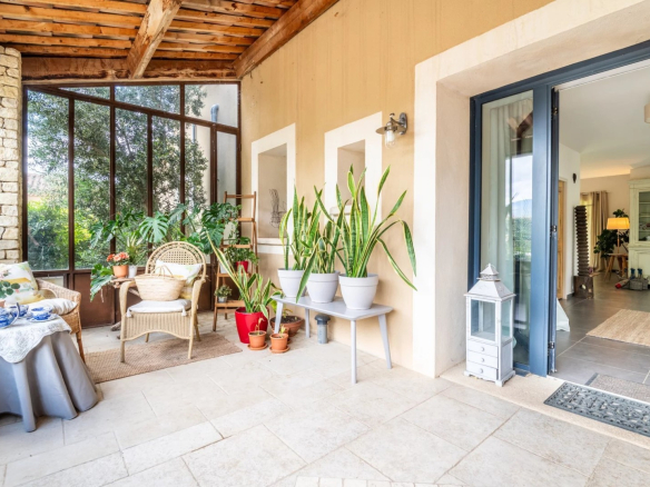 À quelques minutes à pied du centre du village de Saint-Saturnin-lès-Apt, cette propriété discrète s’inscrit dans un environnement naturel préservé, offrant un cadre de vie rare alliant intimité, élégance et polyvalence d’usage.