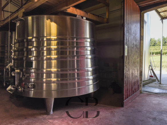 En effet la propriété de 110 ha se décompose ainsi: 80 ha de vignes d’un seul tenant sur un terroir argilo-graveleux trés favorable à la vigne ou il faut souligner la démarche des propriétaires qui ont allié productivité et environnement avec la certification HVE3, 20 ha de bois et 7 ha de prairie qui s’étendent jusqu’aux berges de la Dordogne donnant un accés à l’eau et en complément une source irrigue les terres et alimente les chevaux en eau.