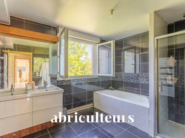 Une grande salle de bains équipée d’une baignoire et d’une douche, ainsi que des WC indépendants, complètent ce niveau.