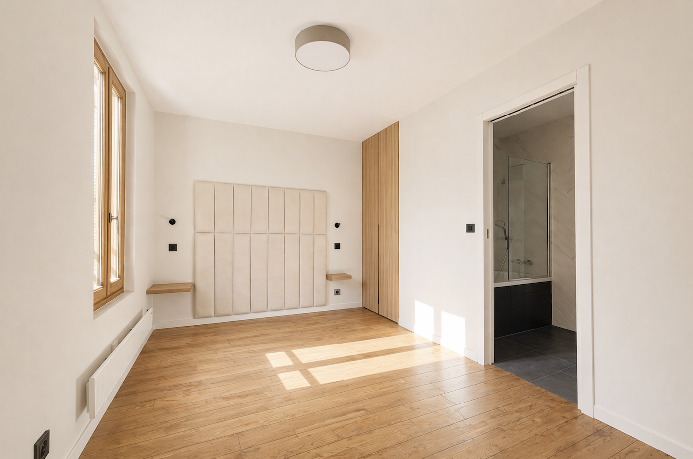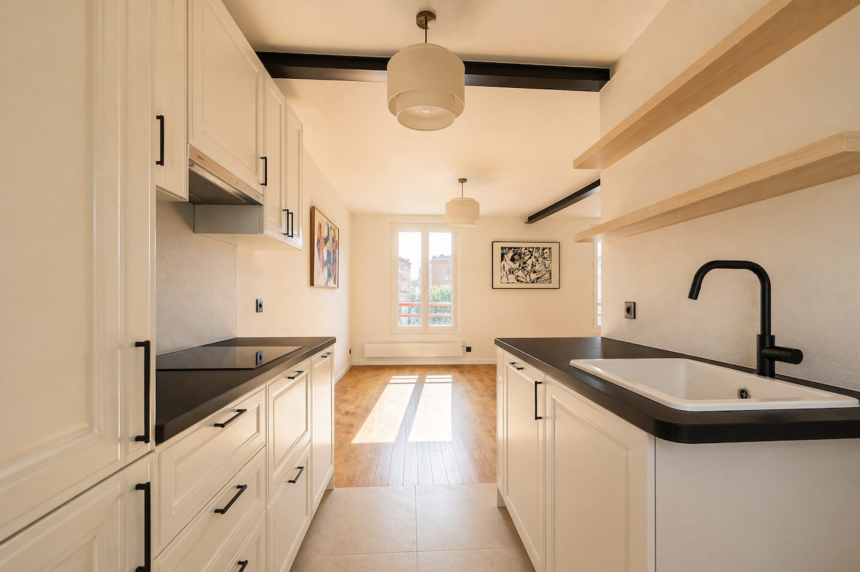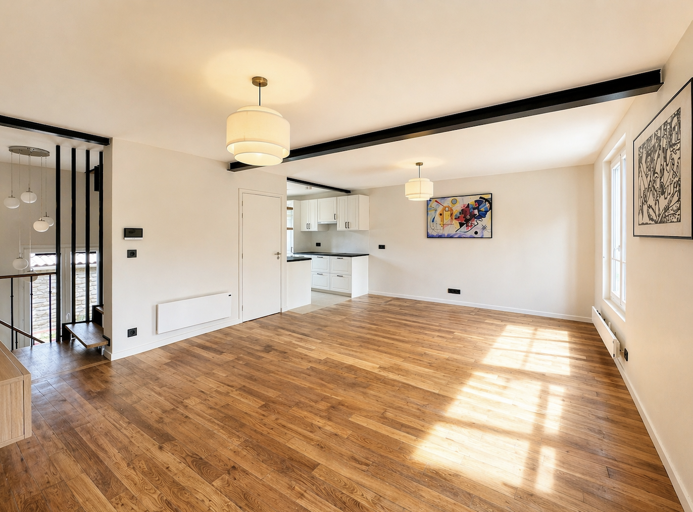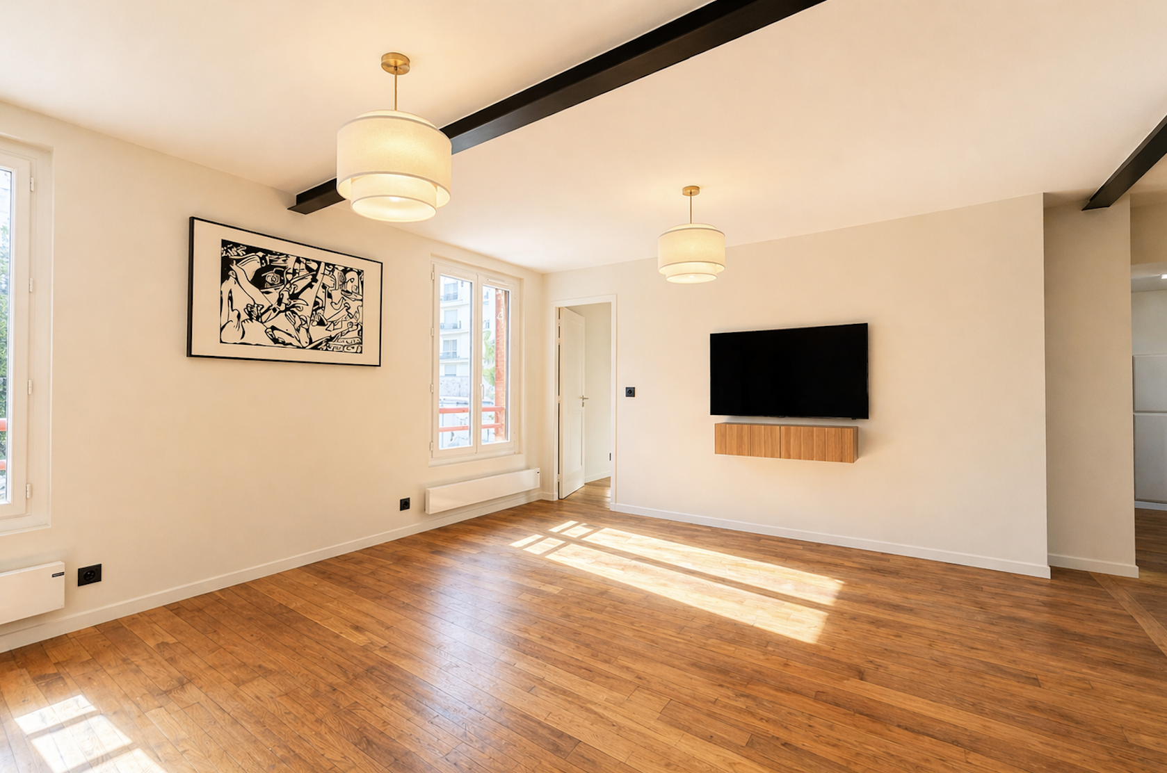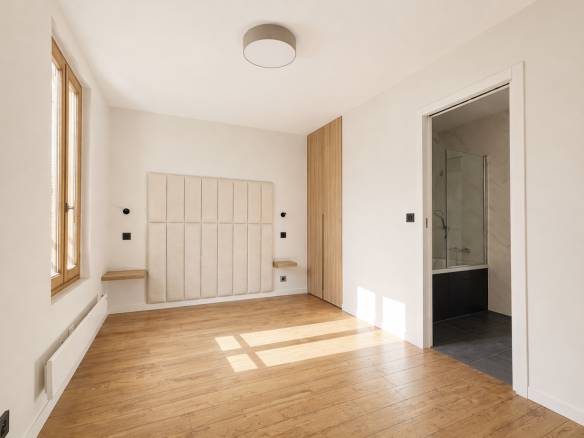 Rénovation complète Matériaux haut de gamme Cuisine équipée avec électroménager Télévisions intégrées (séjour et suite parentale) Système d’interphone vidéo Nombreux rangements (entrée, chambres, palier) Espace bureau Volumes optimisés