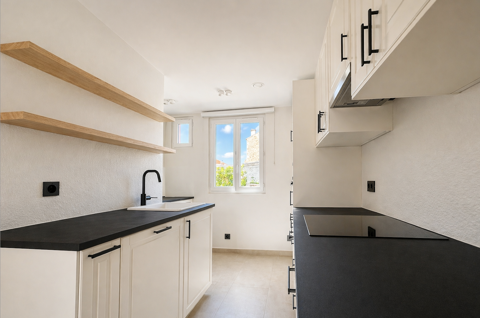 1er étage : Séjour lumineux avec télévision intégrée Cuisine moderne entièrement équipée avec électroménager Deux chambres avec placards intégrés Salle de bain WC indépendants
