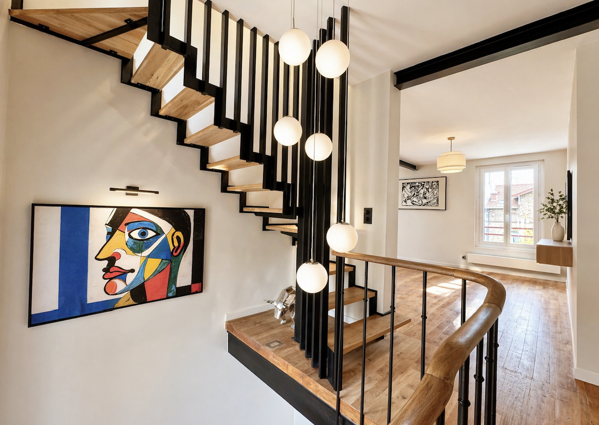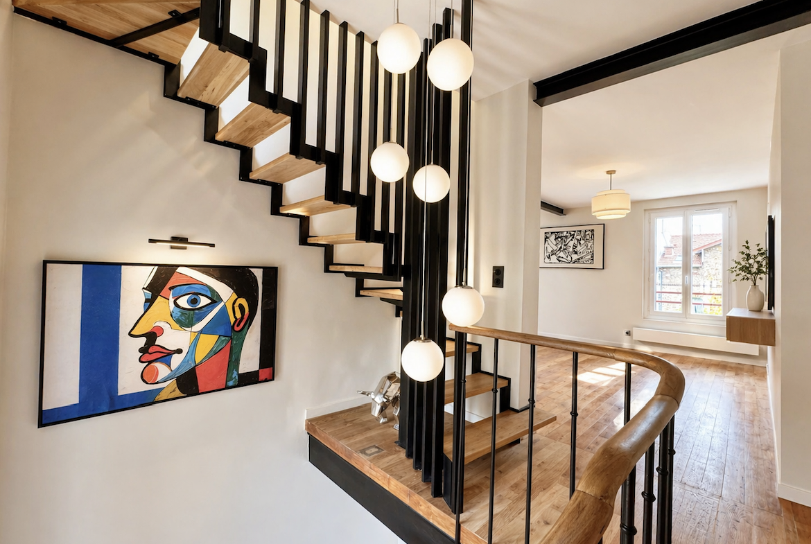 Esprit maison Rénovation haut de gamme Surface 86,28 m2 Carrez / 164 m2 au sol Cave exceptionnelle Quartier résidentiel recherché Proximité transports et Grand Paris