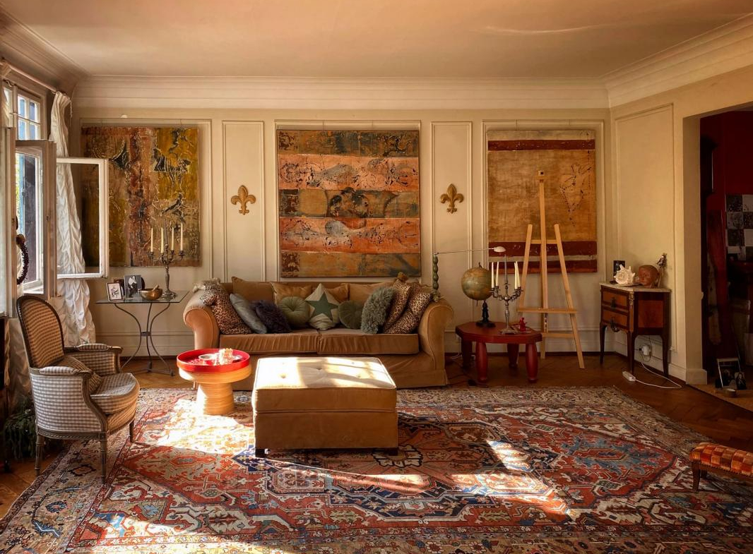Au premier niveau, une belle entrée dessert un vaste double séjour avec sa vue imprenable sur le parc et son magnifique parquet en chevrons d’époque, une confortable salle à manger et sa loggia, une chambre, une grande cuisine équipée prolongée par son cellier, une salle de bain avec fenêtre et un cabinet de toilette séparé.